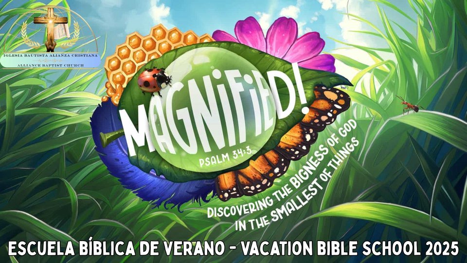 ¡Únase a nosotros para una semana emocionante de diversión, aprendizaje y compañerismo! VBS alentará a los niños a mirar de cerca los detalles del asombroso mundo de Dios y a magnificar — o proclamar — la grandeza de Dios.