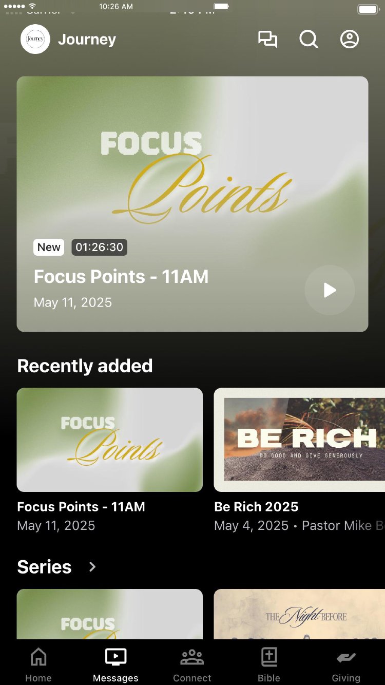 You can use this app to watch or listen to past messages, find out about upcoming events, discover connect groups & studies, join the serve team, connect with each other, give, and more!