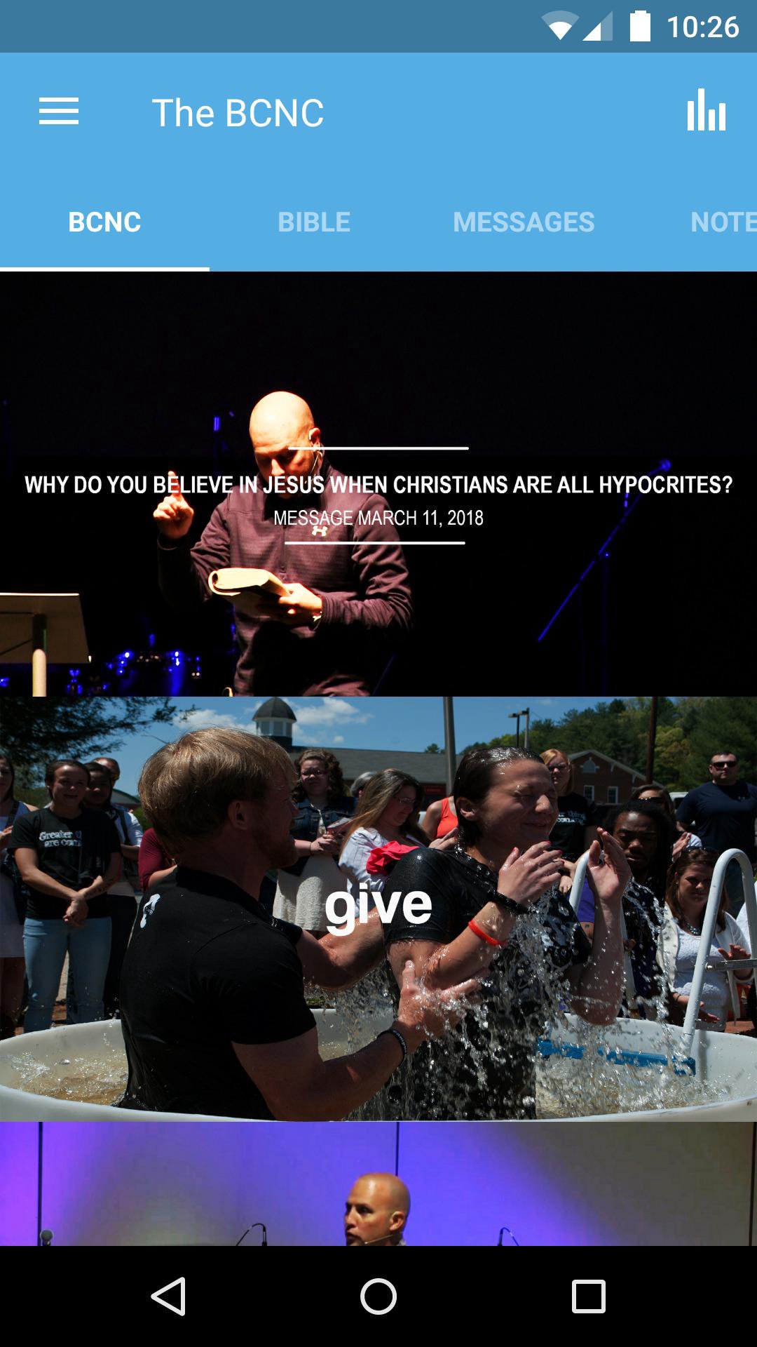 Welcome to the official Bridge Church NC App! Connect with us and join our mission to Connect Imperfect People into a Relationship with a Perfect God! Check out our current and previous sermon series by our Bridge Church Pastors. See our Growth Track Resource for Next Steps in your walk with God. Everything on this app is shareable! Please share it with friends via Facebook, Twitter, or email. For more information about The Bridge Church NC, please visit: http://www.thebridgechurchnc.com The Bridge Church NC app was developed with the Subsplash App Platform.