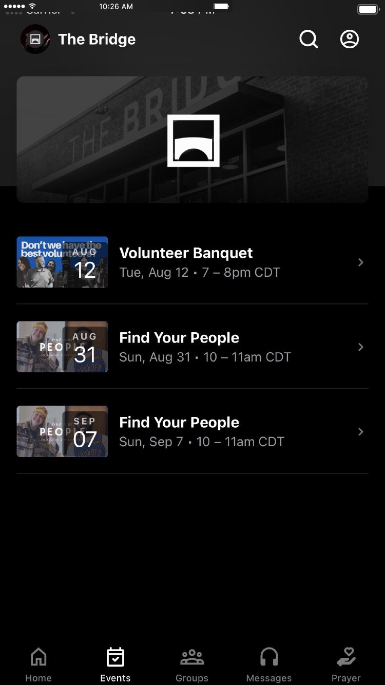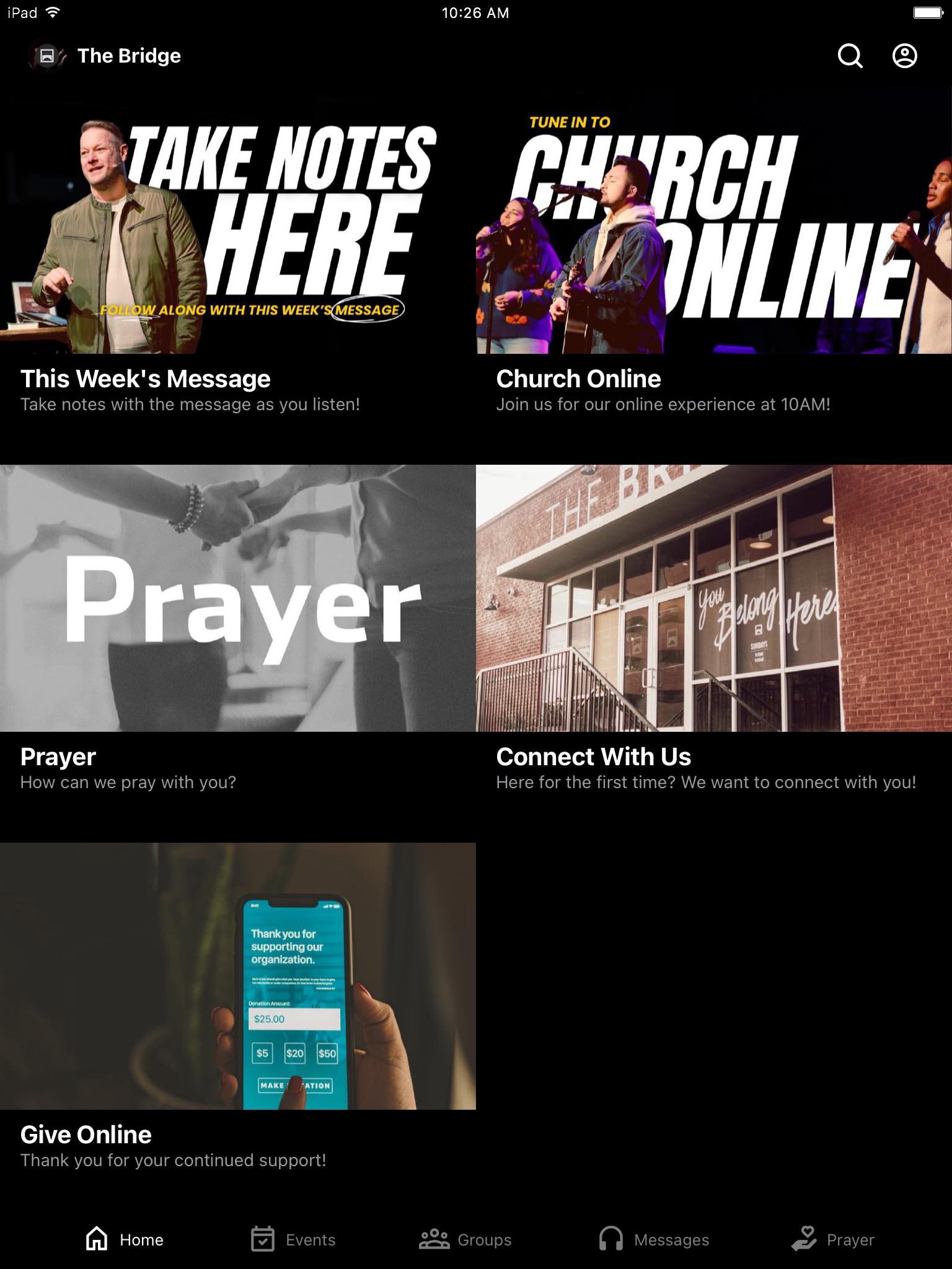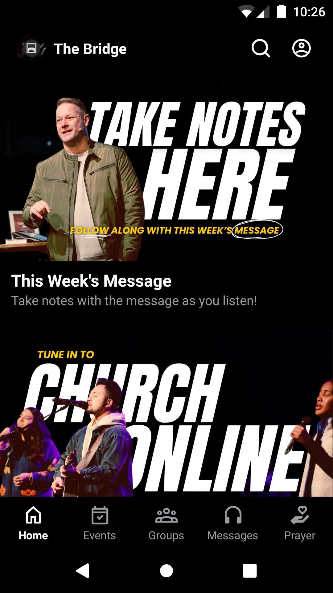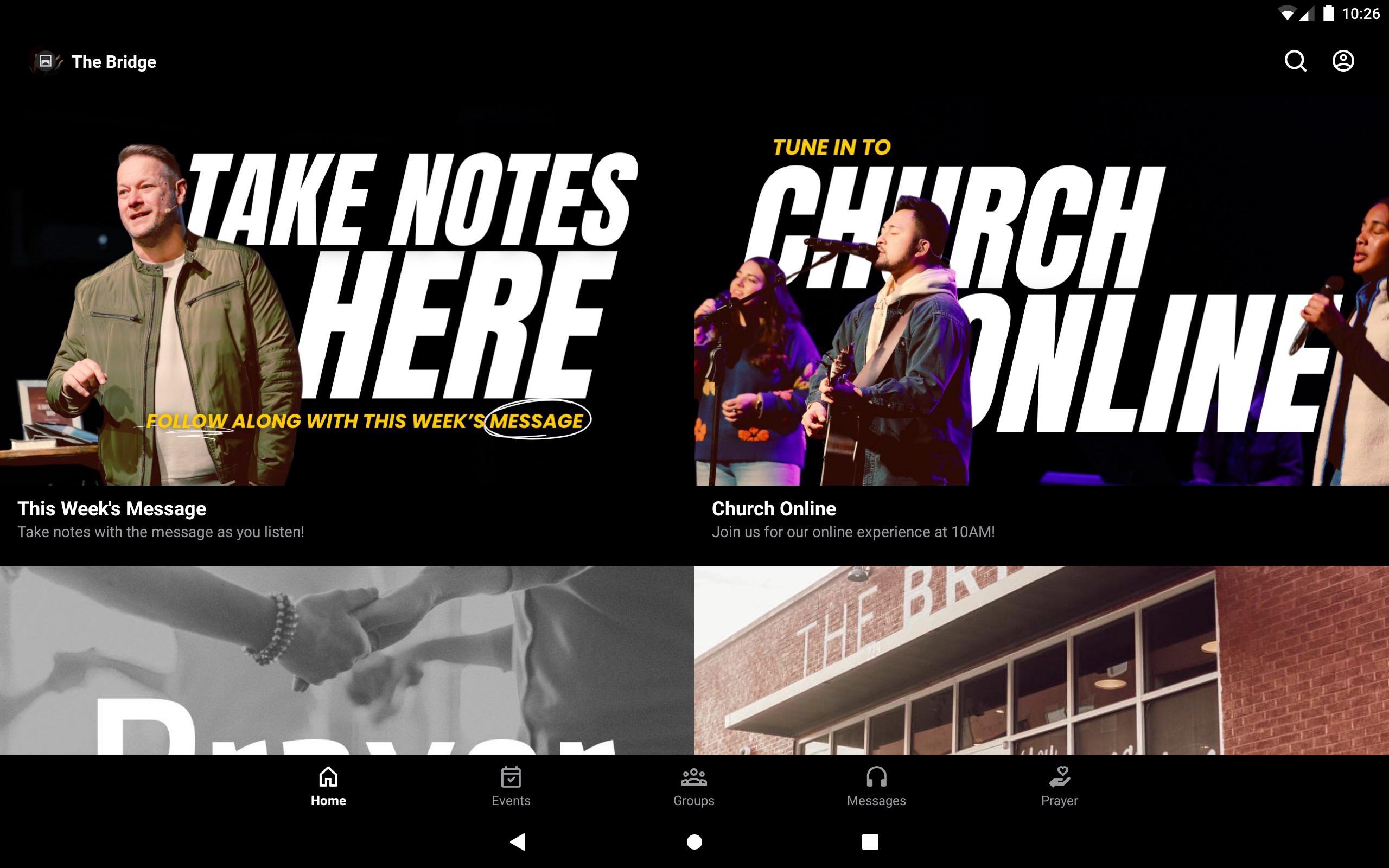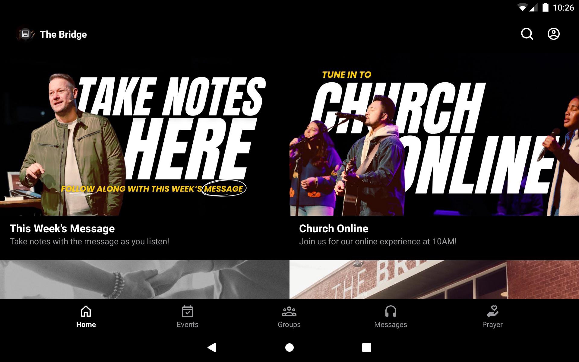 Welcome to The Bridge / Bricktown Campus app! Watch & Listen to messages, check out upcoming events, and share them with friends via Facebook, Twitter, or email. For more information about The Bridge, please visit: http://wearethebridge.church The Bridge / Bricktown Campus App was created with the Subsplash App Platform.