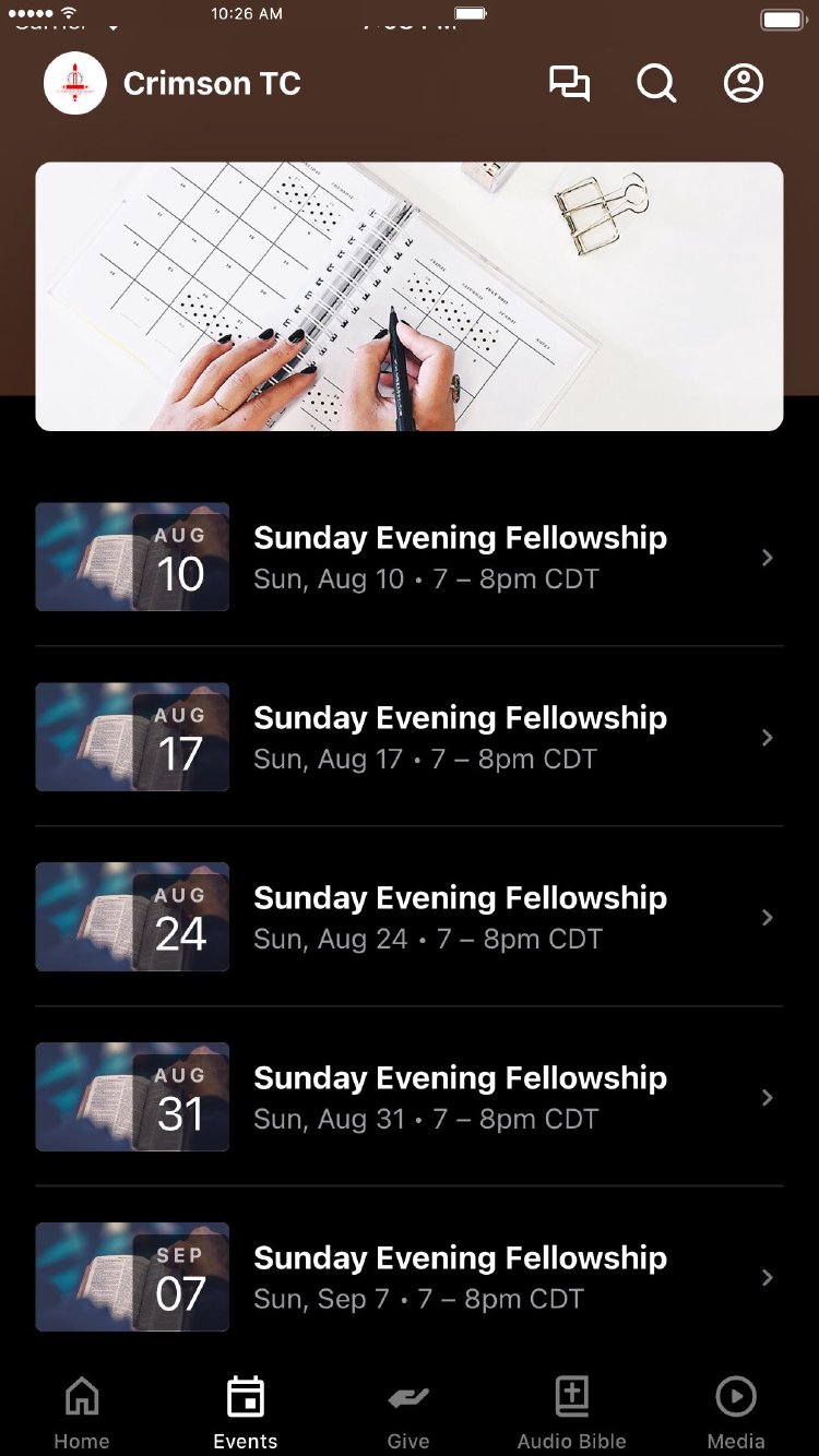 The Crimson Tabernacle Church app will help you stay connected with the day-to-day life of our church. With this app you can: - Watch or listen to past messages - Stay up to date with push notifications - Share your favorite messages via Twitter, Facebook, or email - Download messages for offline listening