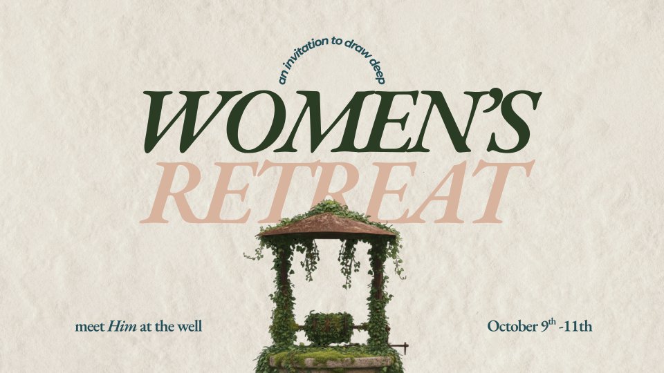 This October, join us for Women’s Retreat 2026: 'The Well', a three-day gathering designed to create intentional space for worship, teaching, reflection, and renewal. Together, we will explore what it means to meet Him at the Well. To acknowledge our thirst, surrender our burdens, and be refreshed by His living water.