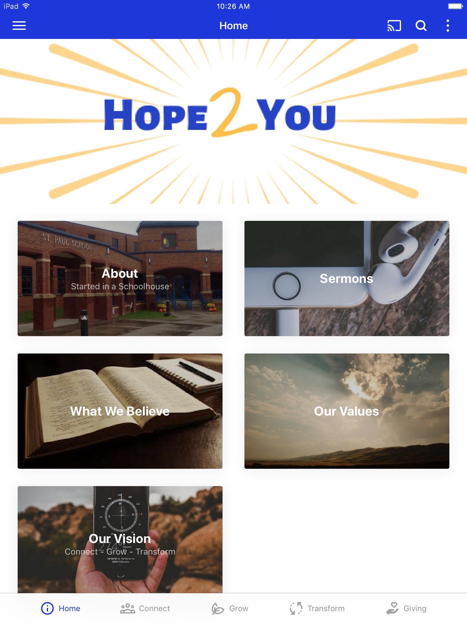 This app will help you stay connected with the day-to-day life of our church. With this app you can: - Watch or listen to past messages - Stay up to date with current events - Share your favorite messages via Twitter, Facebook, or email - Download messages for offline listening