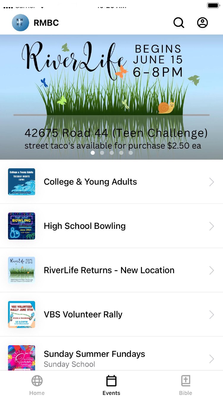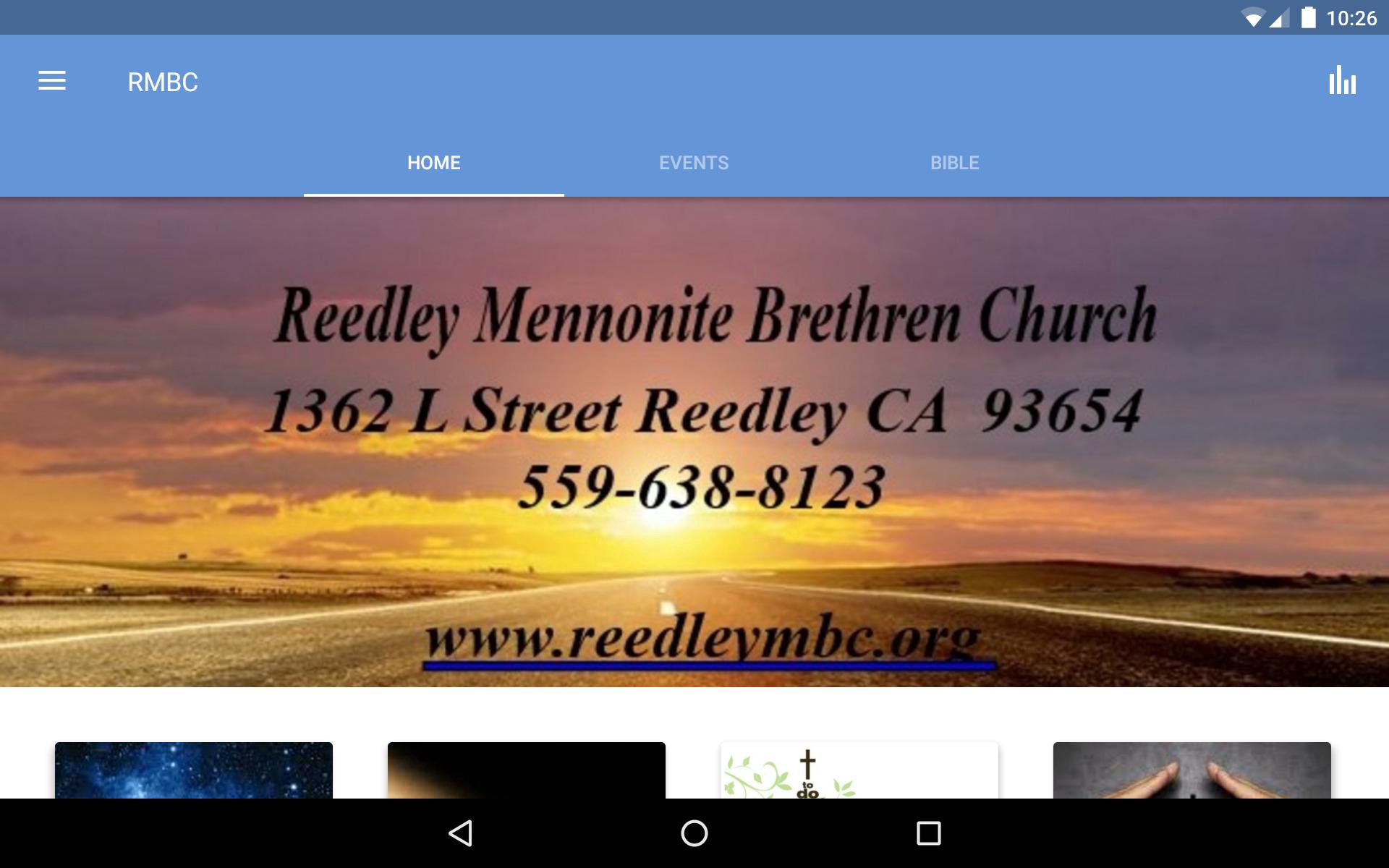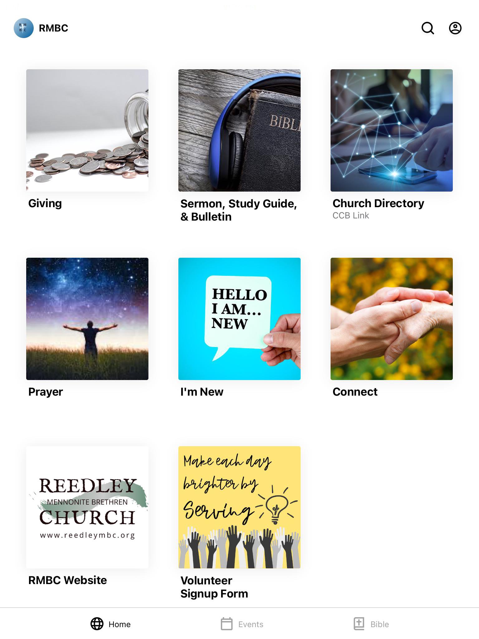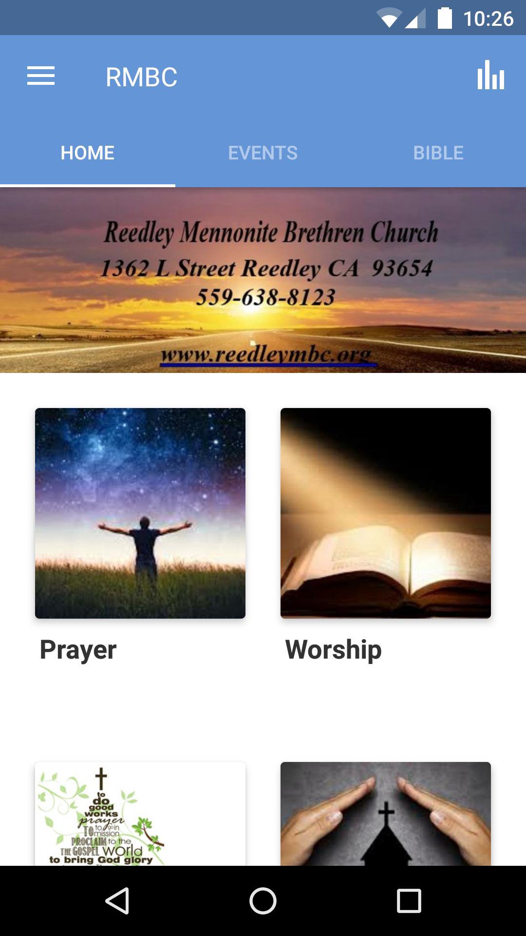 The RMBC App connects you to a variety of resources, including sermons, giving, prayer, event information, and more. Features: Media: - Live stream services right from your mobile device - Download sermons to your device to listen offline - Fill in the sermon notes as you listen to the message - Access the weekly bulletin as well as sermon notes, guides, and text Connection: - Submit Prayer request and request prayer - Give online to the various ministries of RMBC - Stay up to date with push notifications - View events on RMBC's calendar - Sign-up and pay for events More: - Access relevant RMBC documents and organizational information - Follow along with our Bible reading plan - Get directions to our campus For more information about Reedley MB Church, please visit: www.reedleymbc.org