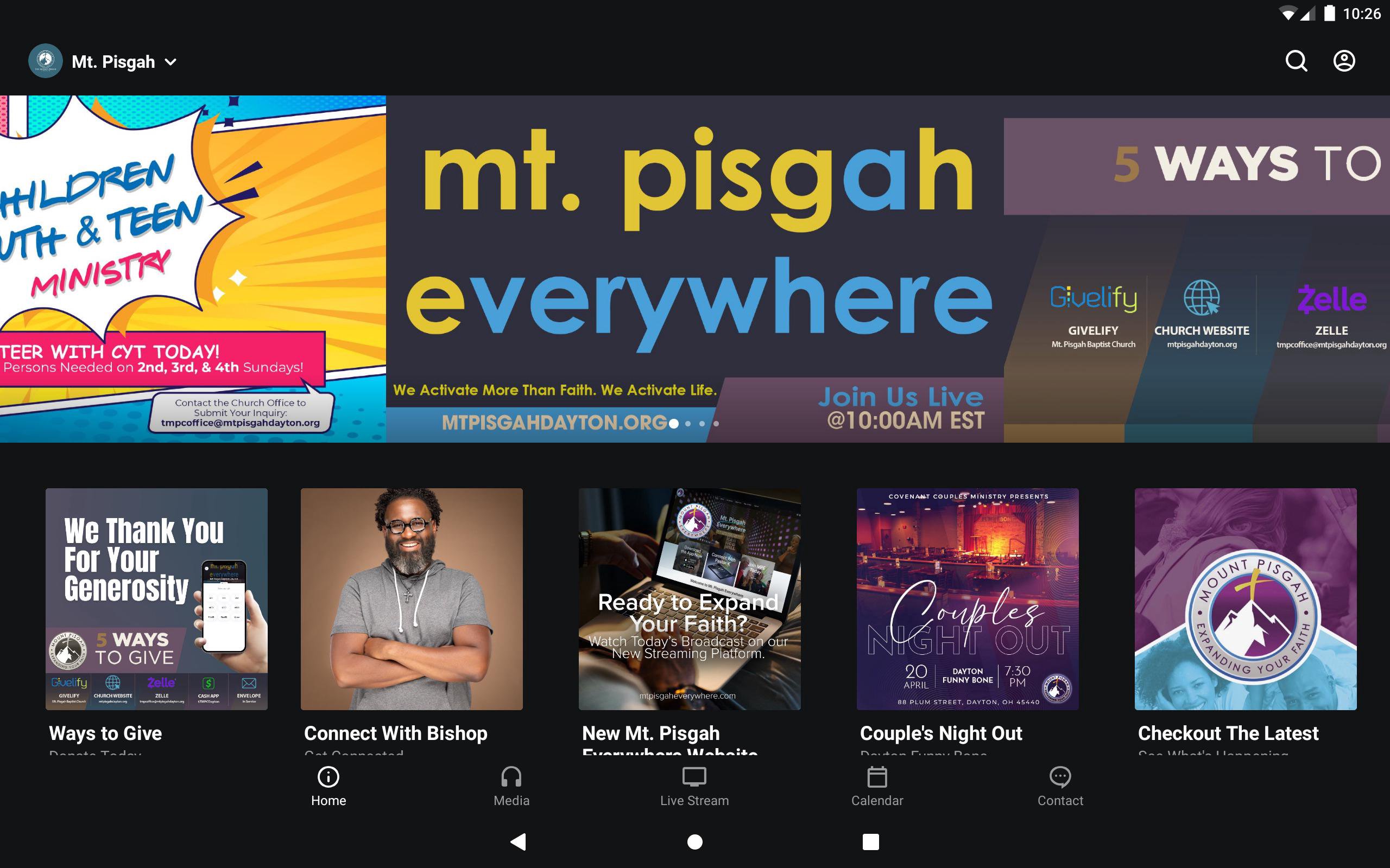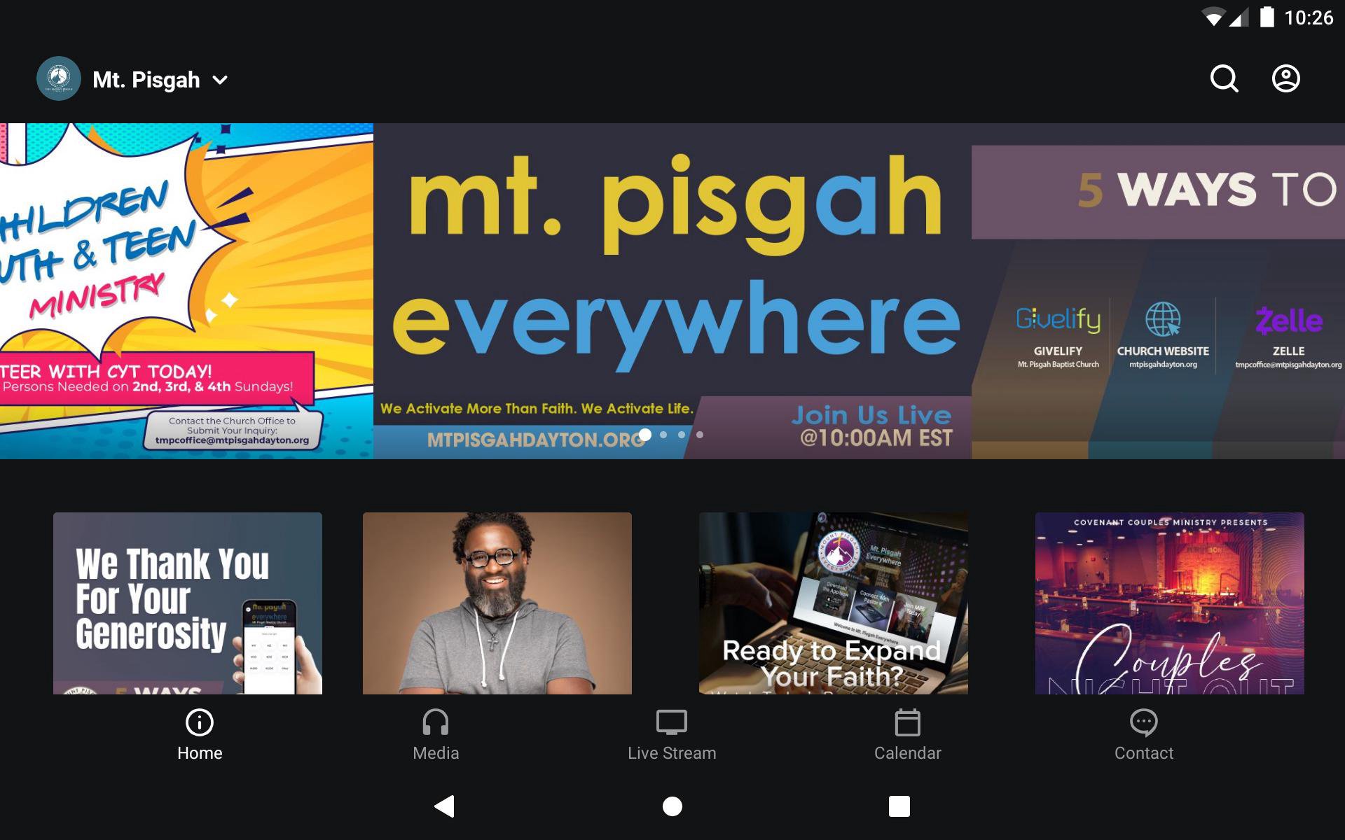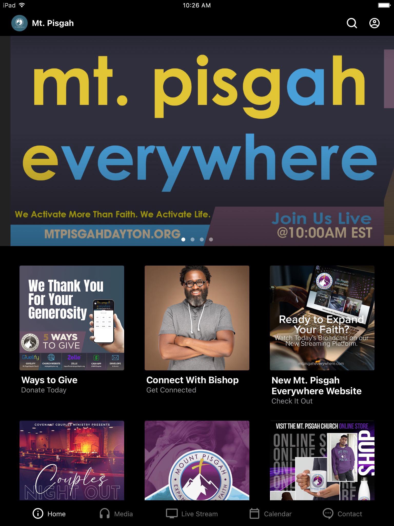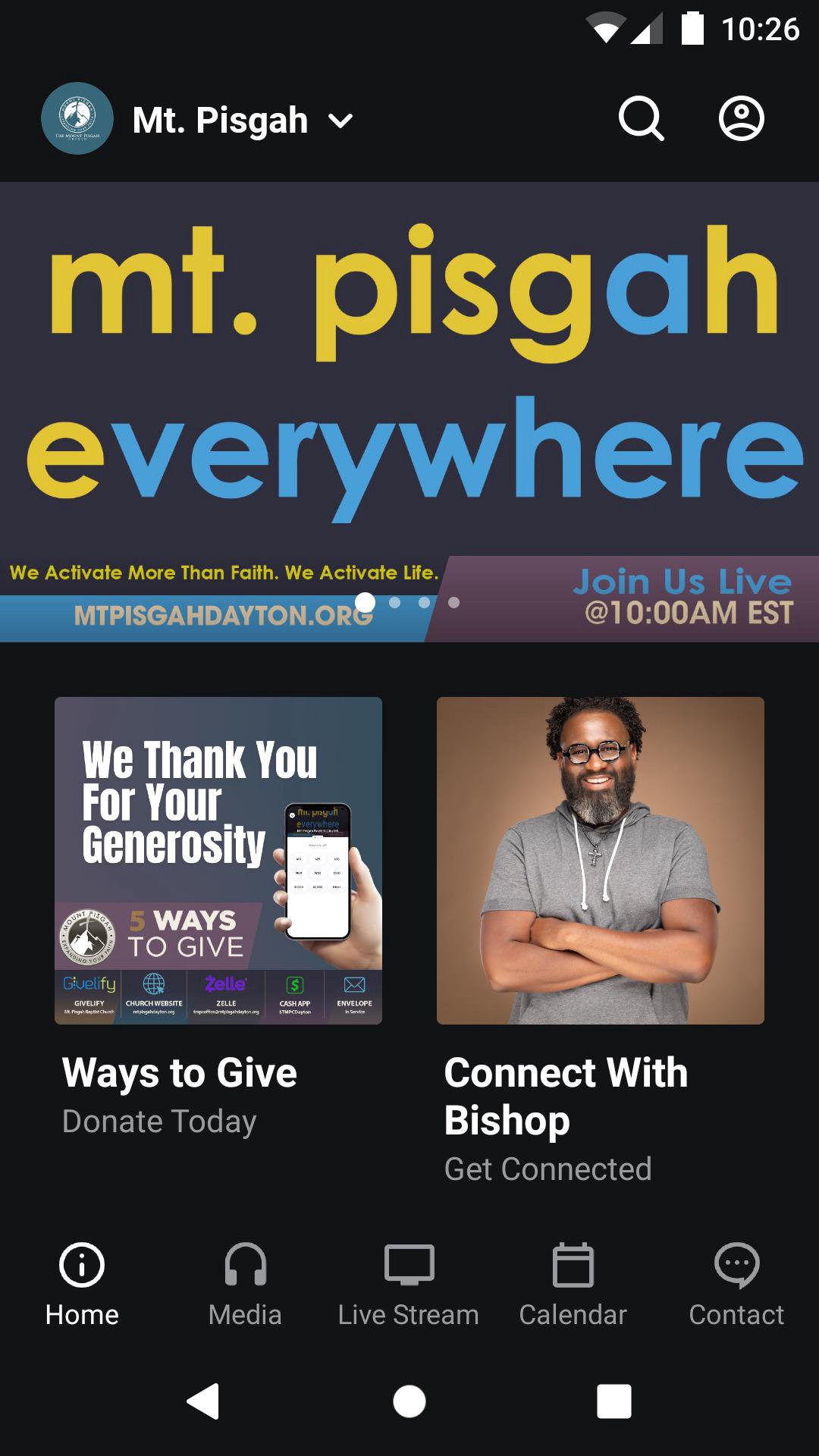 Welcome to the official Mount Pisgah Church application. We are a progressive ministry located in Dayton, OH and we guarantee that as you navigate within our App you will embody the momentum of Mount Pisgah's culture which encourages all to Enjoy Family, Expand Your Faith, Encounter Freedom, and Enhance Your Focus. Within our FREE app, we have provided life-sustaining content which reflects the heart of our leader and ministry. We are a church that believes in hospitality and we will welcome anyone who navigates through this App into our church doors with care and compassion. Our lead pastor is Dr. K. Edwin Bryant (New Testament & Early Christian Literature) and he has a passion for sharing God's word in a relevant, practical, and radical way. When you download this App you will receive expositional messages that are not only life-sustaining but also enhance your desire to honor our Lord and Savior with your life! For more information please visit: http://www.mtpisgahdayton.org