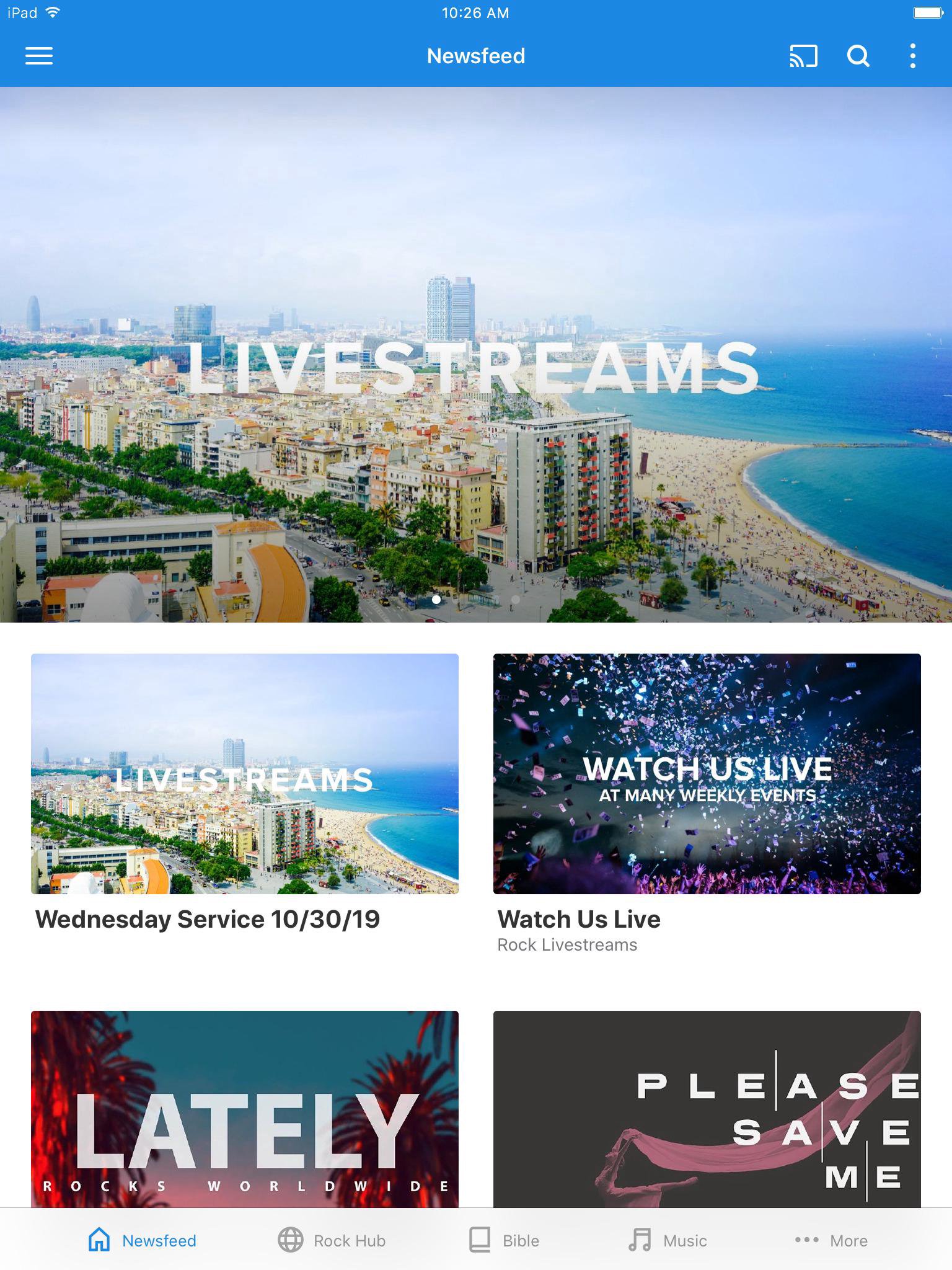 The official app of The Rock Churches Worldwide! Wherever you are in the world, stay connected with the global Rock family. The Rock app is your personal hub, filled with powerful content and resources to help you grow, have fun, better your life, and change the world. With this app you can: • Watch or listen to past messages • Follow along with our Bible reading plan • Sign up for events • Read articles and blog posts • Stay up to date with push notifications • Share your favorite messages via Twitter, Facebook, or email • Download messages for offline listening • Access resources for cellgroups and teachings • Report progress • Listen to podcasts • Find our latest music • And lots more! For help or more information, contact us below! www.therockchurches.com (http://www.therockchurches.com/) hello@therockchurches.com