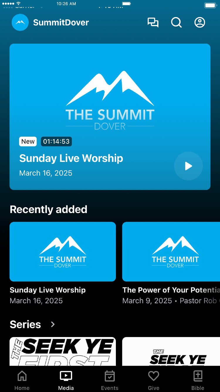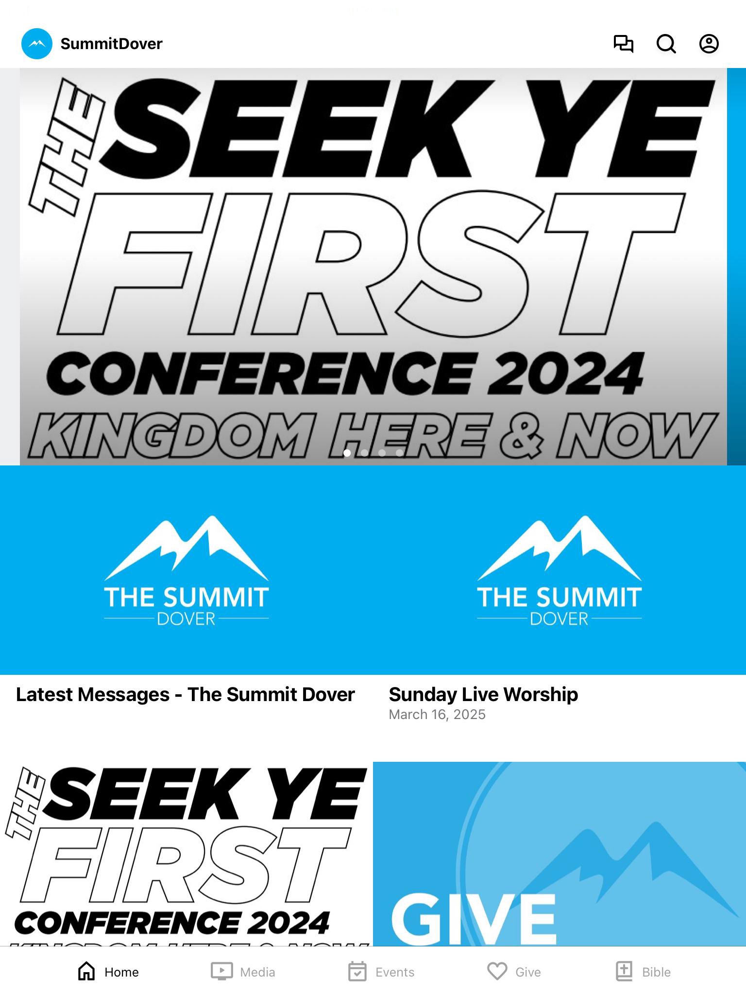 The Summit Dover is a place where people can meet Jesus and engage in life-giving community. We believe in creating a space where people can have authentic encounters with Christ, discover their gifts and use them for God's glory. The Summit Dover app is the media center for all content and events taking place at The Summit Dover. - Watch or listen to messages - Stay up-to-date with current events - Give tithes and offerings through the app - Read the Bible - And much more ... The Summit Dover app that will connect you with God, family, and divine purpose. Download it now!