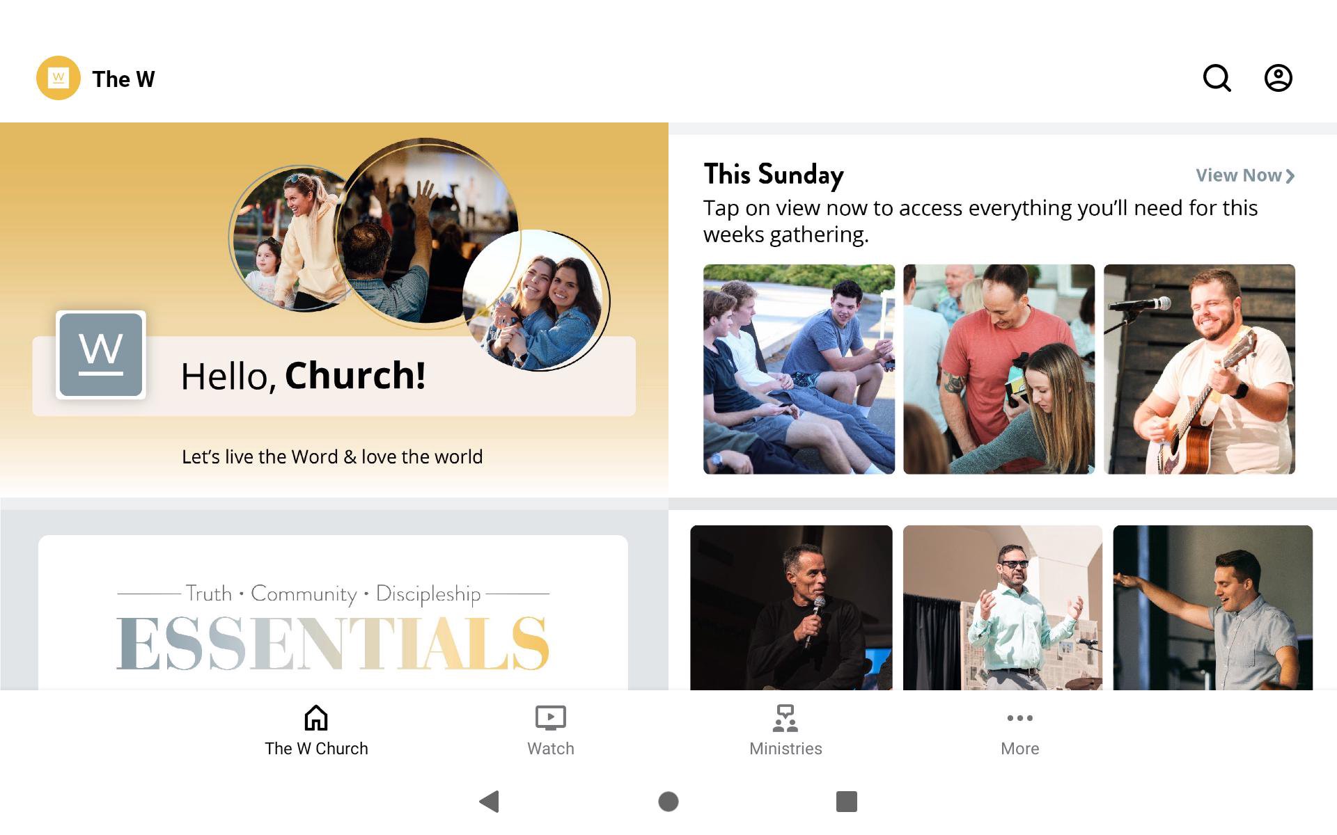 Looking to stay connected to everything happening at The W Church? Download our app to catch up on past sermons, check out what events are coming up, and stay connected with your church family.
