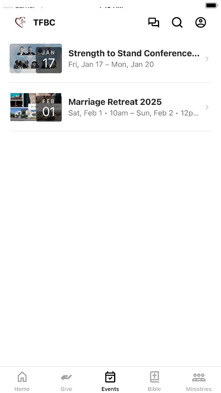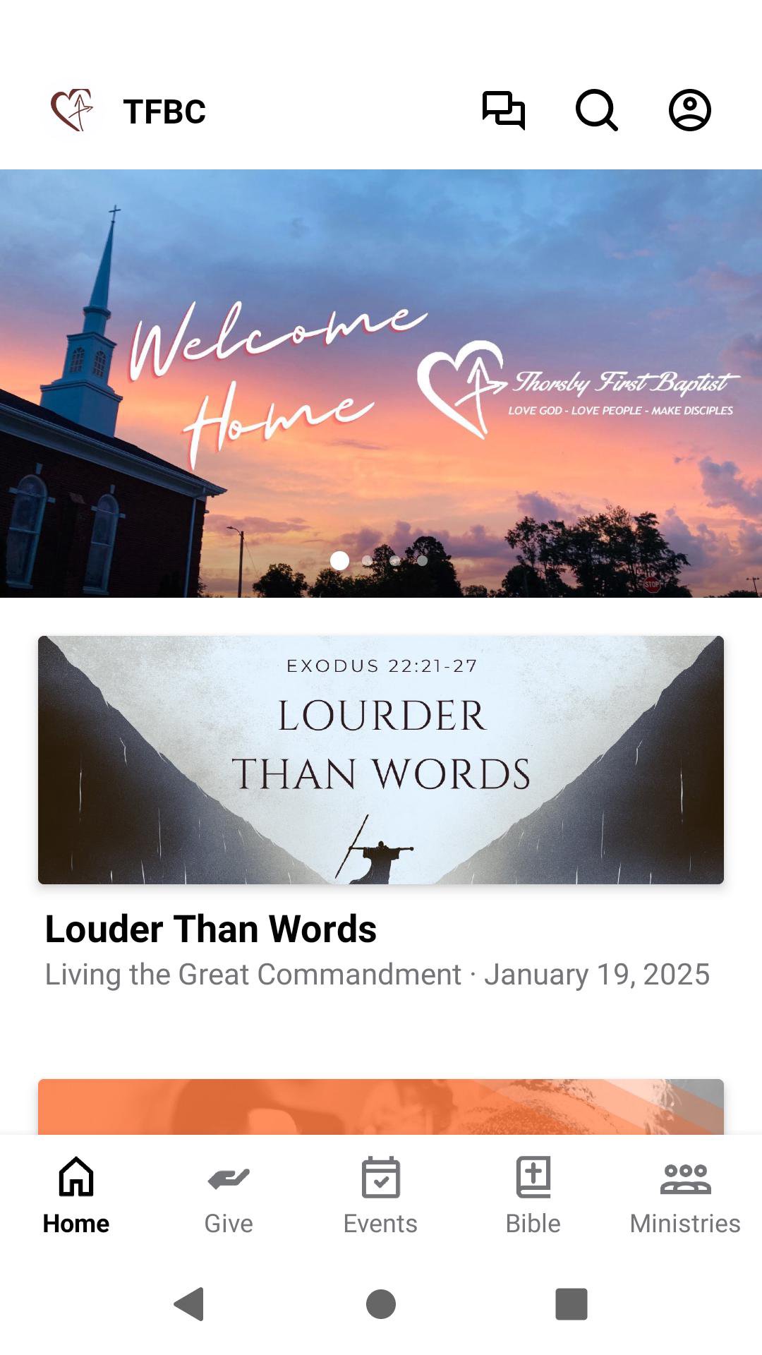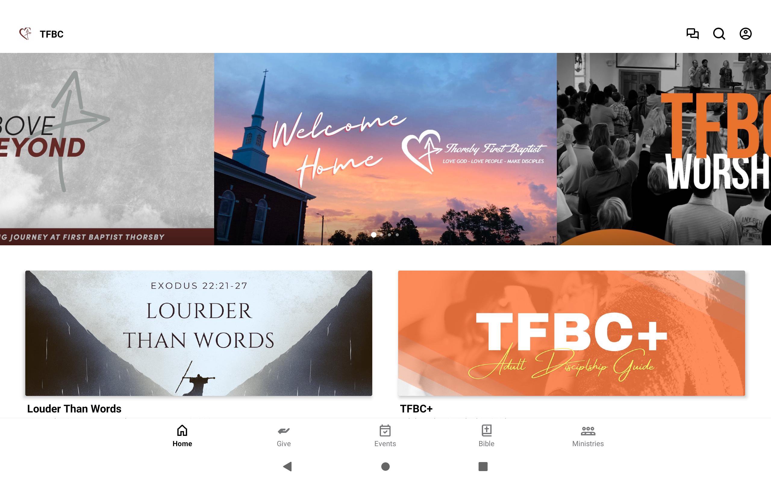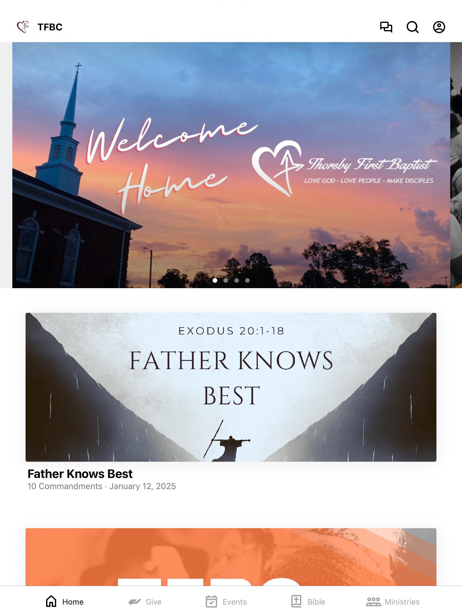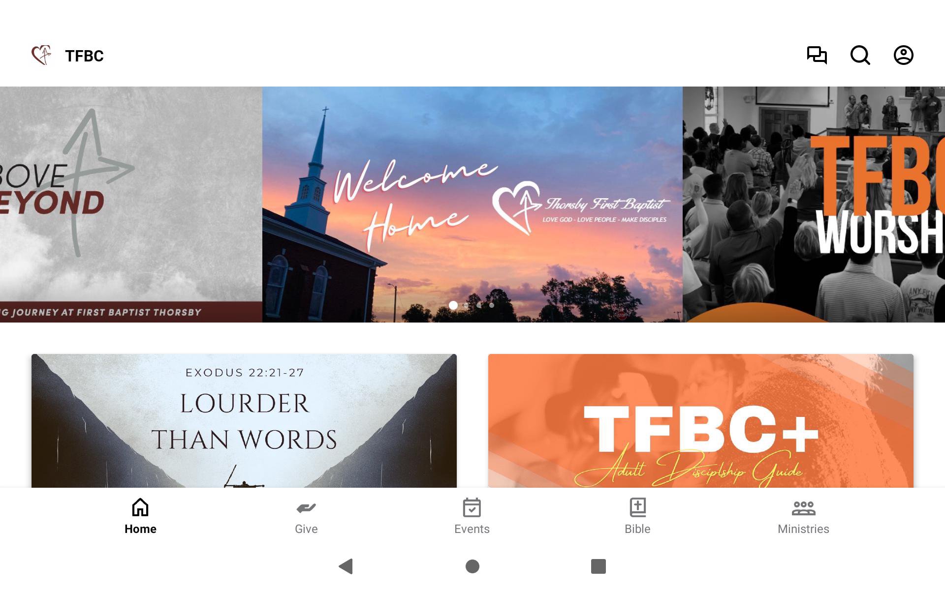 Through the app we are hoping to help you stay connected and informed about everything at TFBC. If you are looking for a place to watch last week's sermon, to give online, or to see about an upcoming event we hope this app will help you gain all that information and more.