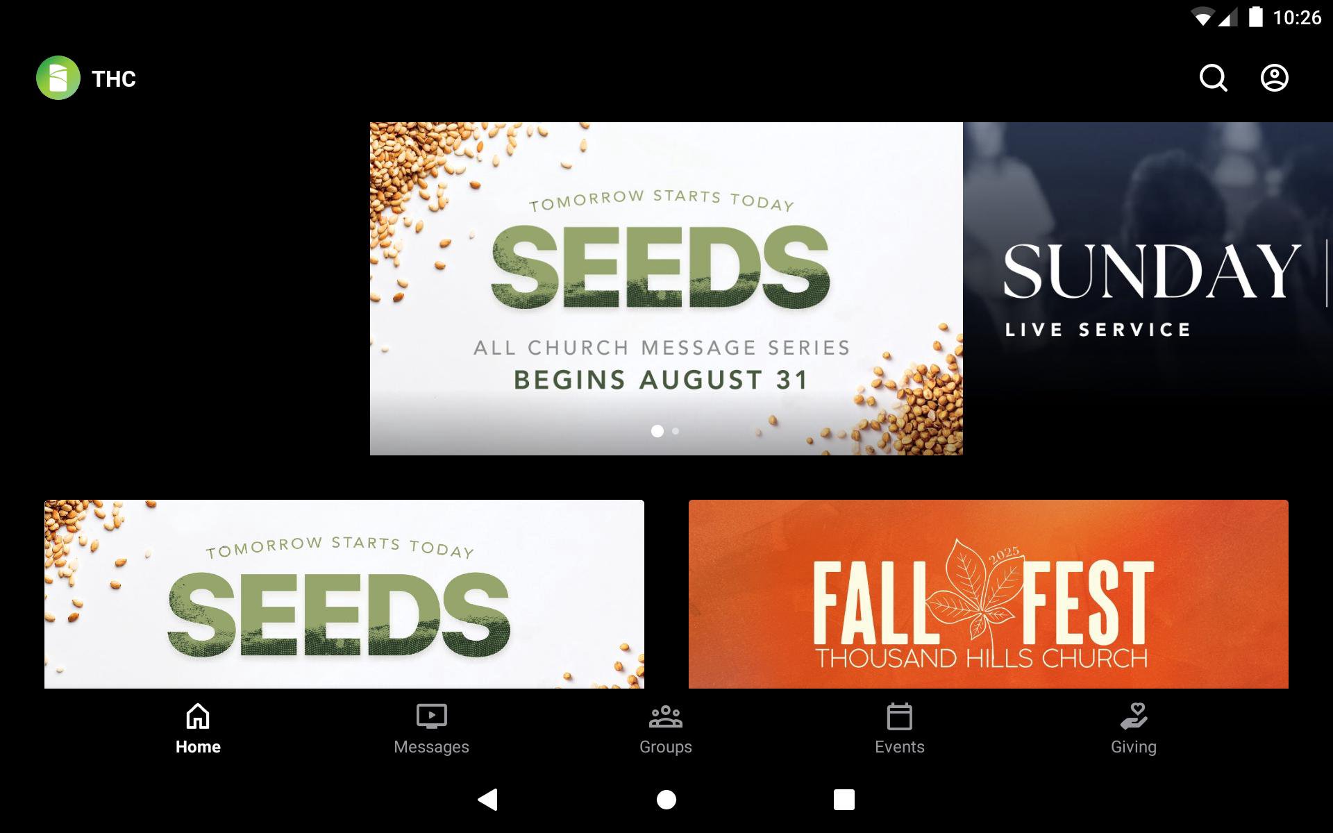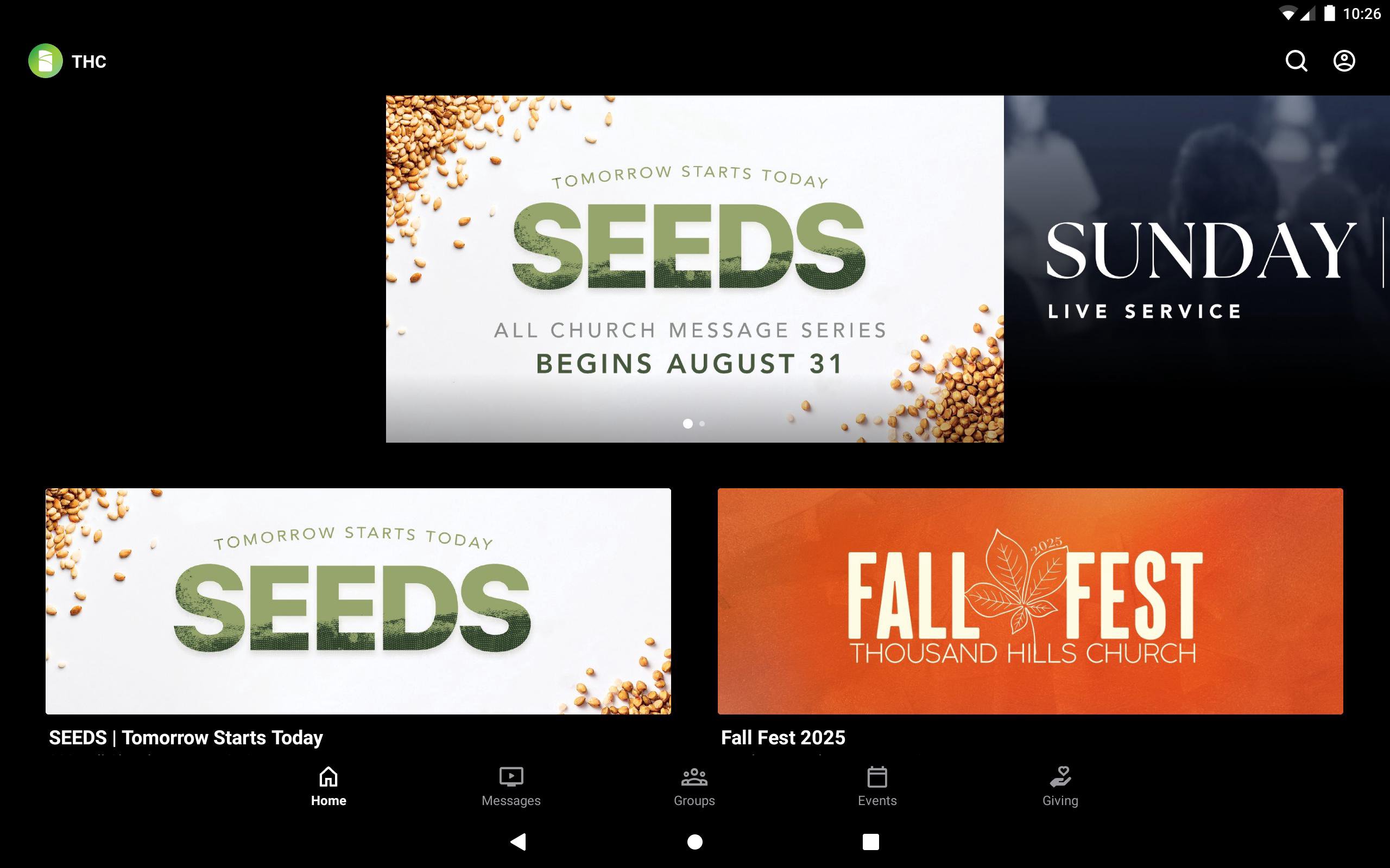 Thousand Hills' app is designed for you to interact with Thousand Hills Church! You can watch our services live, view previous messages and series, register for upcoming events, give, find groups to grow, and so much more! We want to provide Thousand Hills People every resource we can to connect and grow. Download the app today!