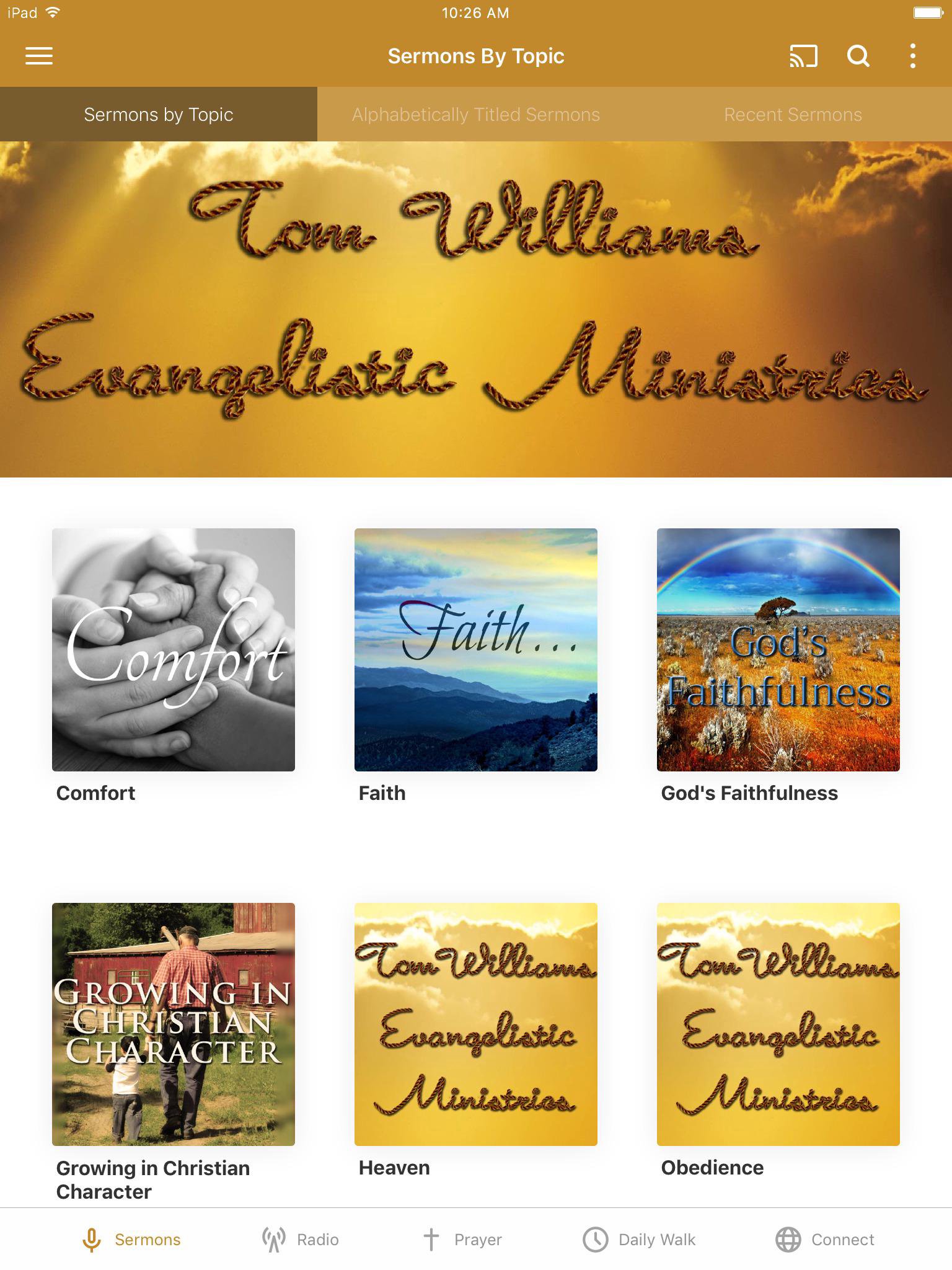 Welcome to the official Tom Williams Evangelistic Ministries app! Check out the sermons, radio broadcasts and other biblical helps from Evangelist Tom Williams, who has been preaching the Gospel of Jesus Christ for over 50 years. For more information about the Tom Williams Evangelistic Ministries, please visit: http://www.twwm1.com/ The Tom Williams Ministries App was created with the Subsplash App Platform.