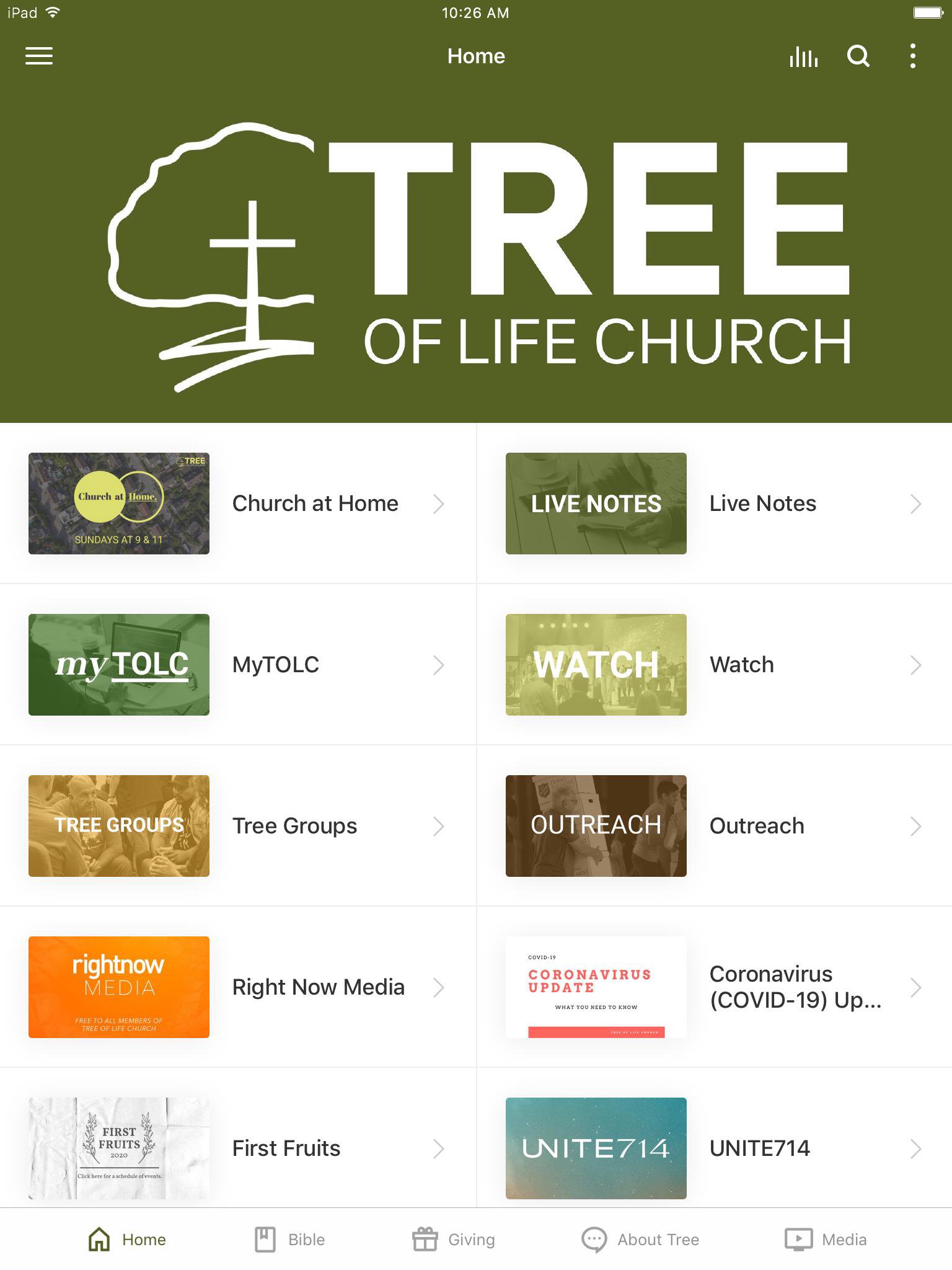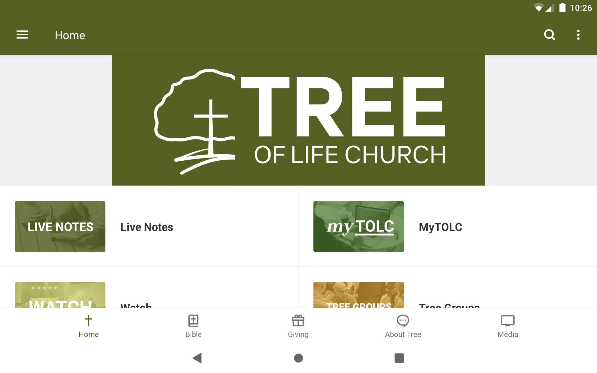 The Tree of Life Church app lets you access live notes for sermons, watch or listen to recent messages, find outreach opportunities and get connected to groups in your area! At Tree of Life Church, our mission is to connect all people to the life, love and power of Jesus! For more information about Tree, check out treeoflifechurch.org