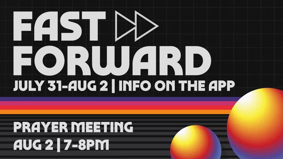 As the summer comes to a close and fall gets ready to kick off, join us for prayer and fasting from Wednesday, July 31 through Friday, August 2nd to focus on the gospel to move FORWARD in our lives, our church, and our cities!