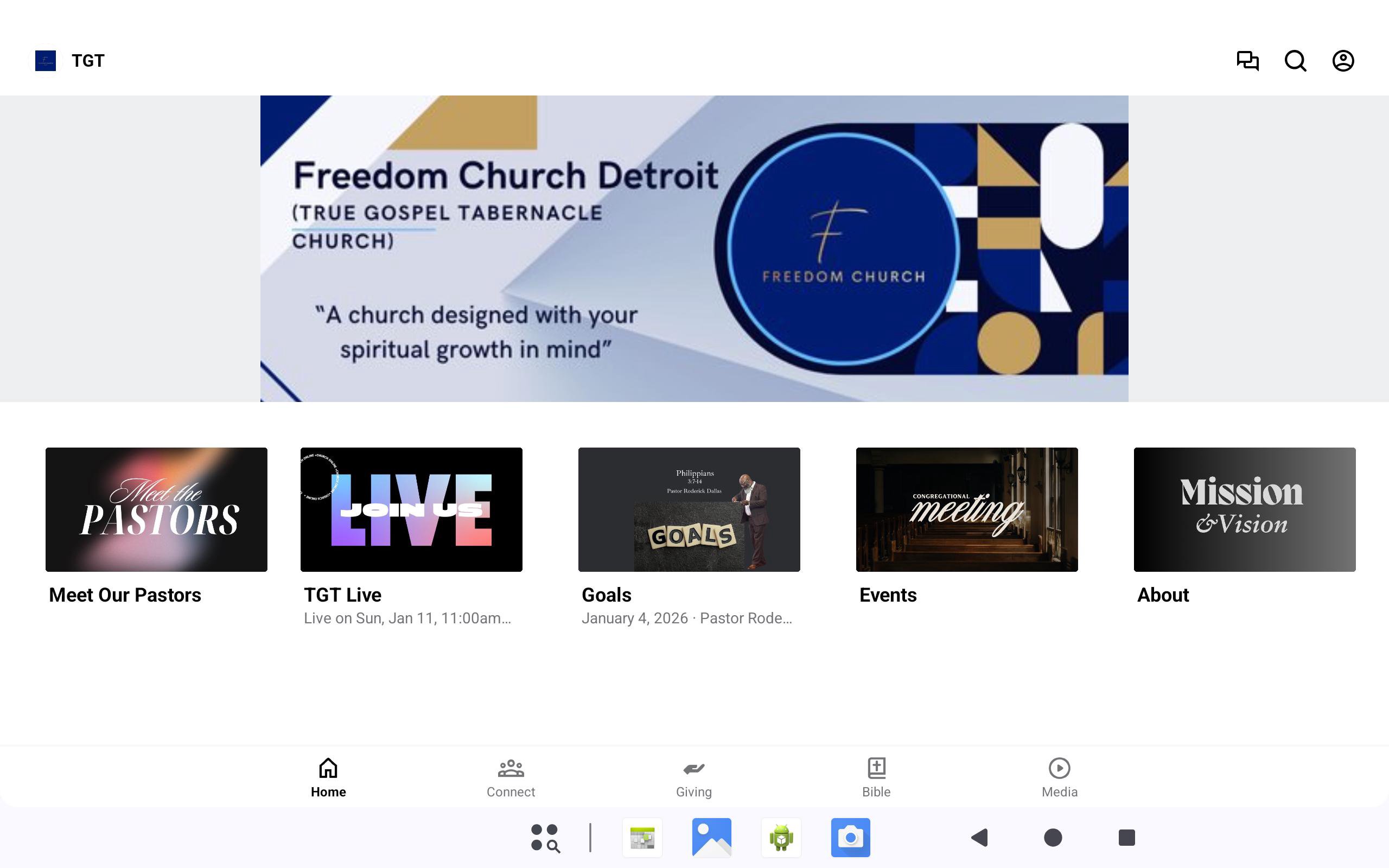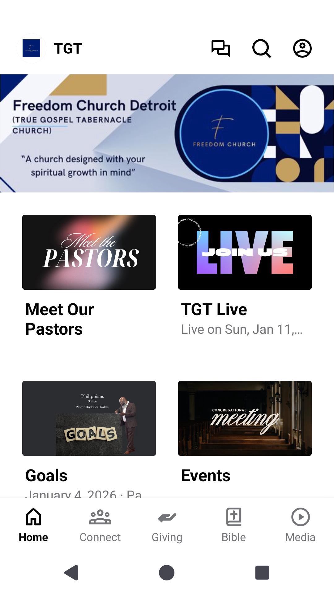The Freedom Church Detroit App features content from our Pastors Roderick & L'aShawn Dallas and TGT church of Detroit. With this app you can: -Join LIVE worship experiences. -Watch or listen to past messages. -Stay up to date with push notifications. -Share your favorite messages via Twitter, Facebook, or email. - Stay up to date with events A church designed with your spiritual growth in mind!