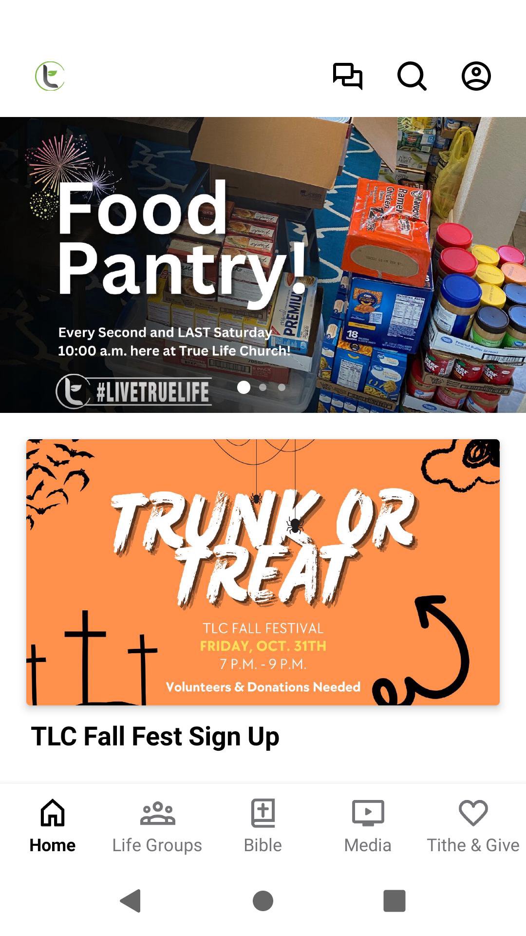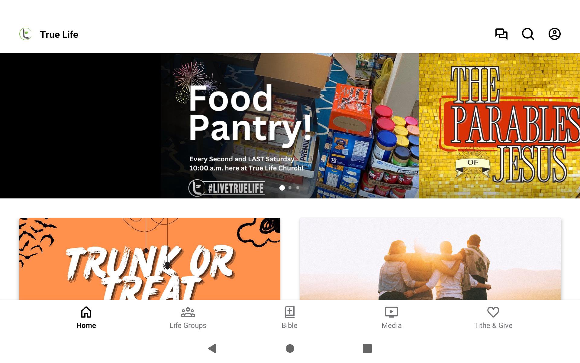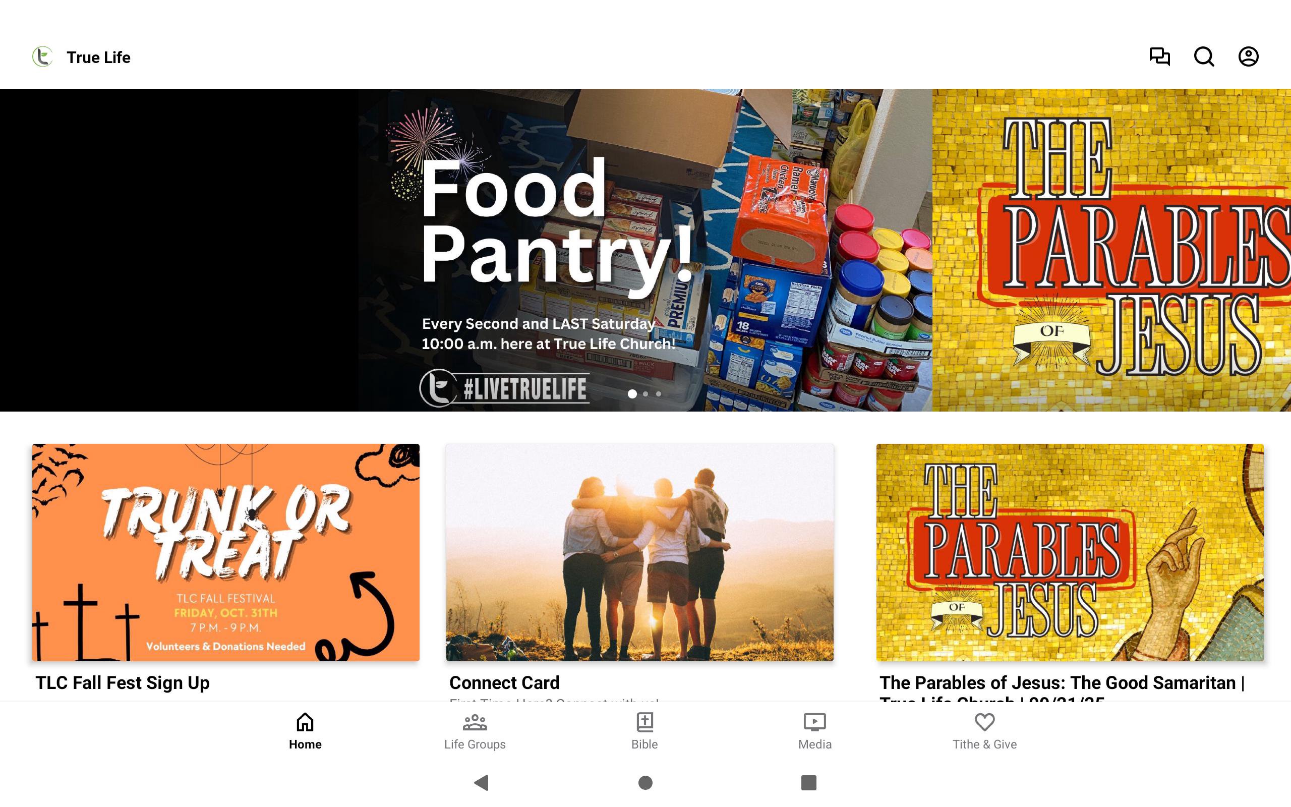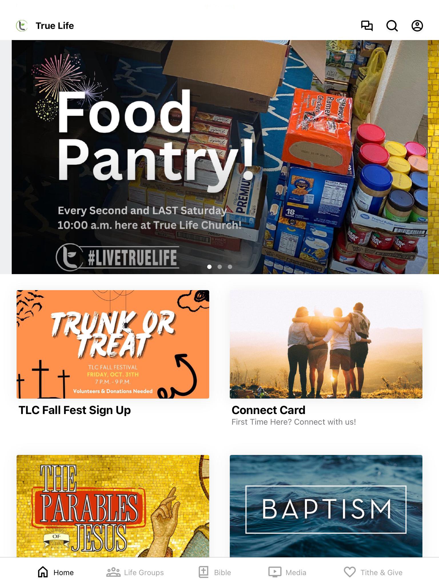 Connect deeper with your small groups, other members, and stay connected to our events and weekly messages here on the True Life App