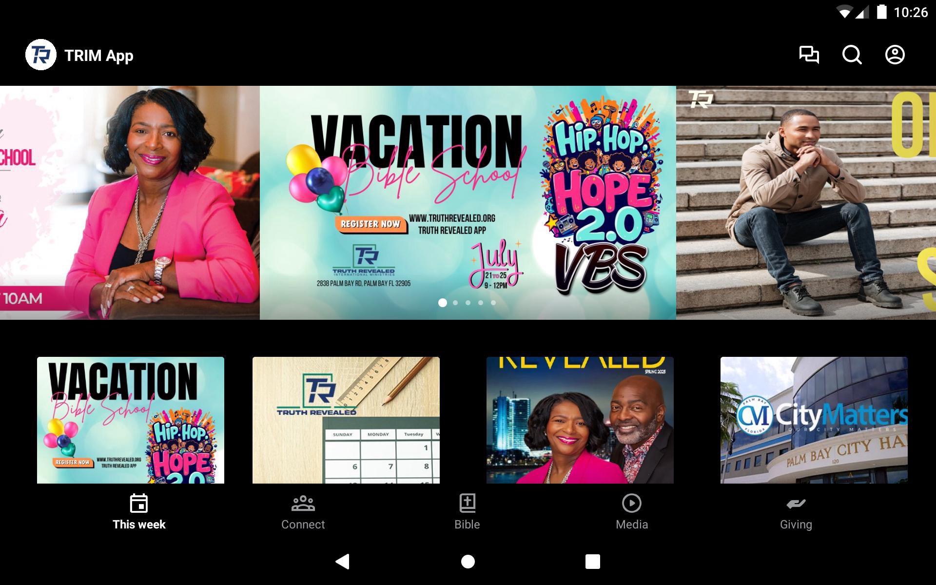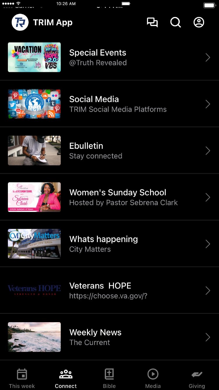 We encourage you to explore our app and take a look at everything we have to offer to you and your family. We are confident you will find TRIM to be a place where you can experience God and connect with others through our multiple LifeGroups and various social media platforms, to include, FaceBook, YouTube, Instagram and Twitter. Don't hesitate to contact us if you have any questions. What you'll find in the App: You'll be able to listen to recent and past audio messages Read our magazine Easily accessible calendars Forms/Registrations for events and other activities Up to date announcements and notifications Convenient mobile giving