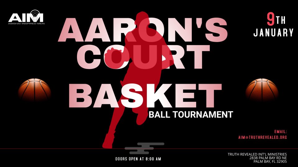 Join us at Truth Revealed for the Aaron’s Court, 3-on-3 Basketball Tournament! This tournament is open to all boys and men ages 16 and up. Registration is free! Gather your roster, create a team name, and register today!