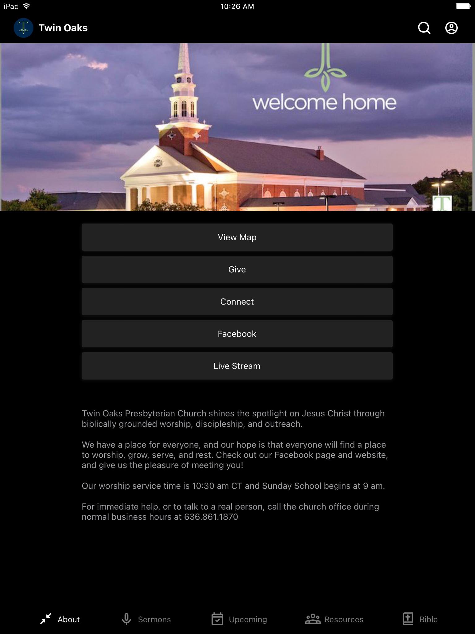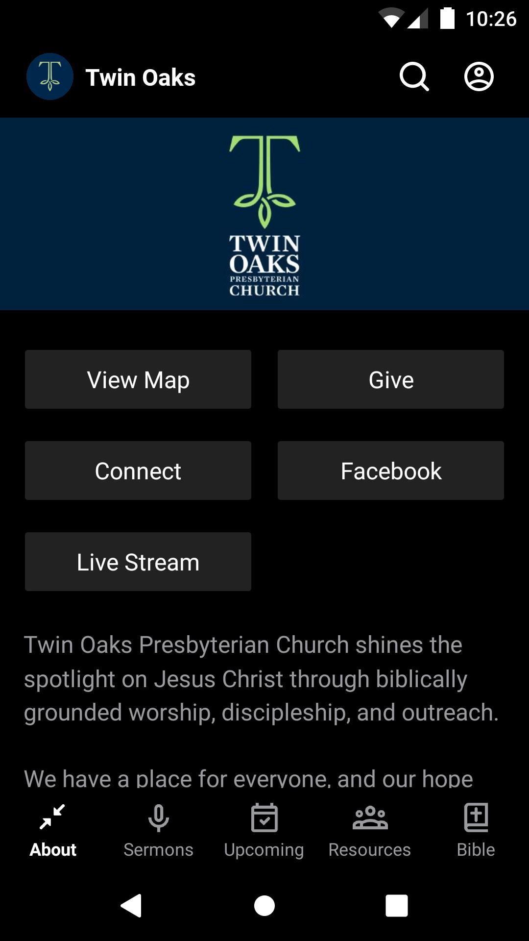 Welcome to the official mobile app page for Twin Oaks Presbyterian Church in St. Louis, MO. We are an Evangelical, Reformed, and Presbyterian church community in Southwest St. Louis county at the intersection of Big Bend Road and Highway 141. We are also a body of believers who come from many different backgrounds and beliefs, but who are unified in our belief and worship of the triune God! Feel free to browse and share any of this information with friends and family, but we would consider it a privilege to meet and get to know you. We hope you will join us for Sunday worship at 10:30 AM. For more information about Twin Oaks Presbyterian Church, please visit www.twinoakschurch.org