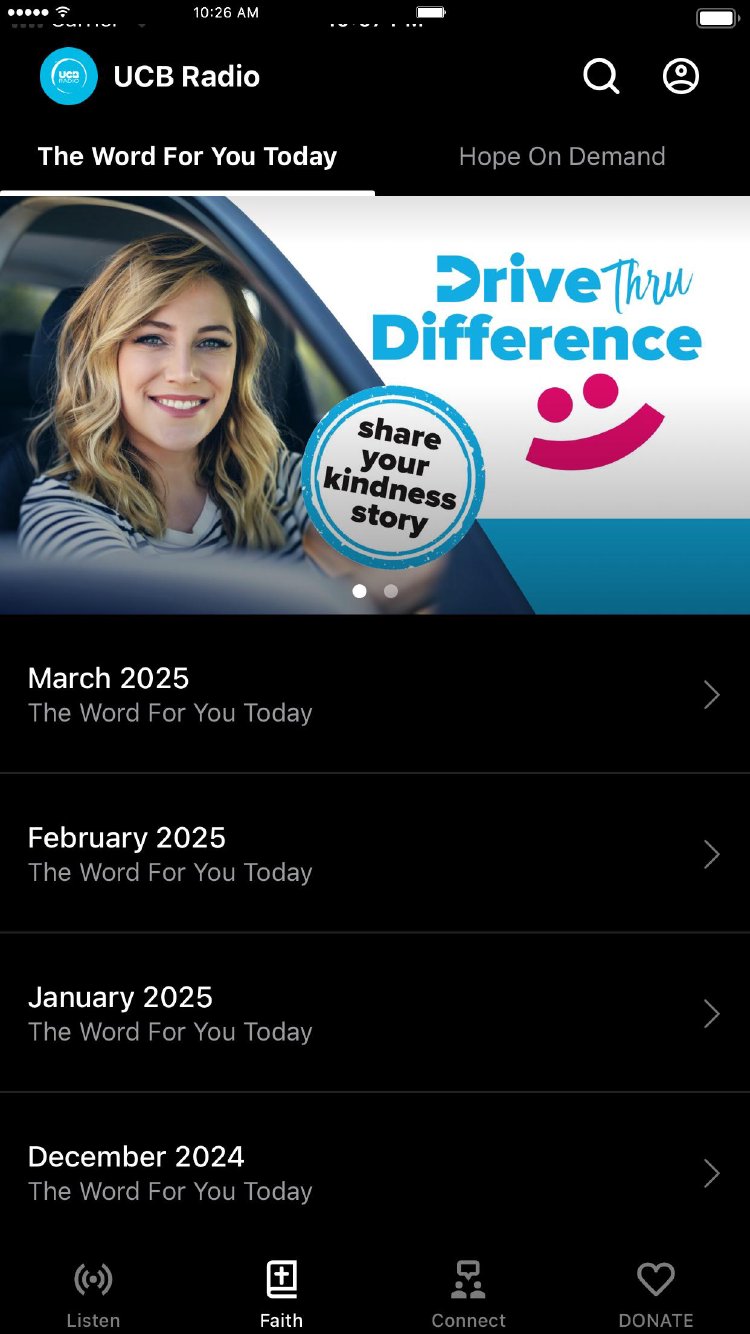 Welcome to the official UCB Radio app! Listen to the UCB Radio stream, read The Word For You Today daily devotional, connect with us via Social Media and so much more! After you’ve downloaded and enjoyed our app, you can share it with your friends via Facebook, Instagram, X, or email. For more information about UCB Radio, please visit: https://www.ucbradio.com/ The UCB Radio app was developed with the Subsplash App Platform.