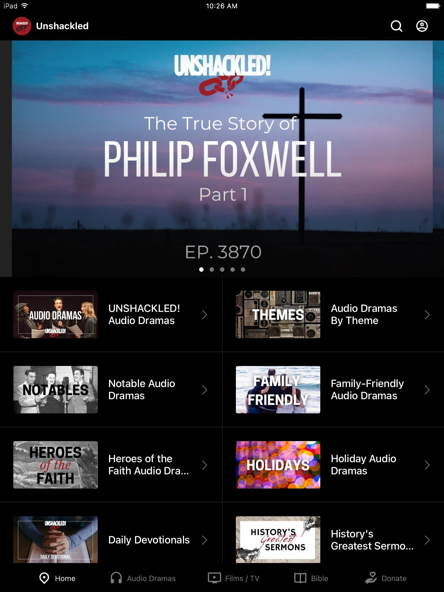 This app is packed with powerful content and resources to help you grow and stay connected. With this app you can: - Listen to current and past episodes - Watch short films of people "unshackled" - Tune in to latest podcast - Share your favorite episodes, films & podcasts via Twitter, Facebook, or email - Stay up to date with push notifications - Link to sermons on PGMTV - Donate easily