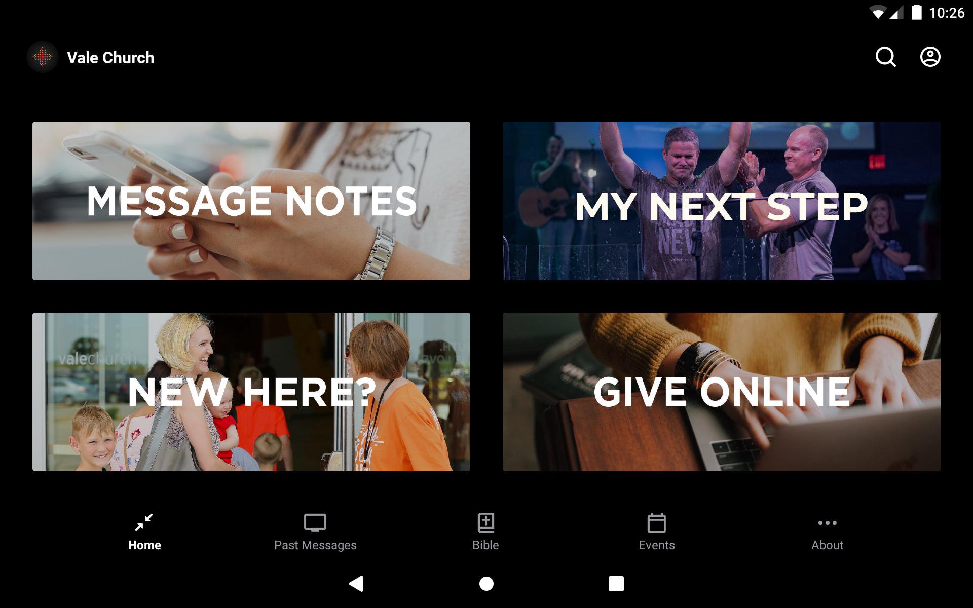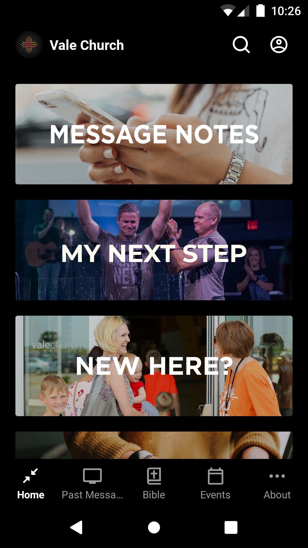 Welcome to the official Vale Church App! You're now just a touch away from all our weekend messages and relevant information about Vale Church. Additionally, you can also share content with your friends via Facebook, Twitter, and email. Also in the app: - Details on service times and locations. - Access to church news. - Dates for upcoming events and registration. - Opportunity to give online. For more information about Vale Church, please visit www.vale.church. The Vale Church App was created with The Church App by Subsplash.