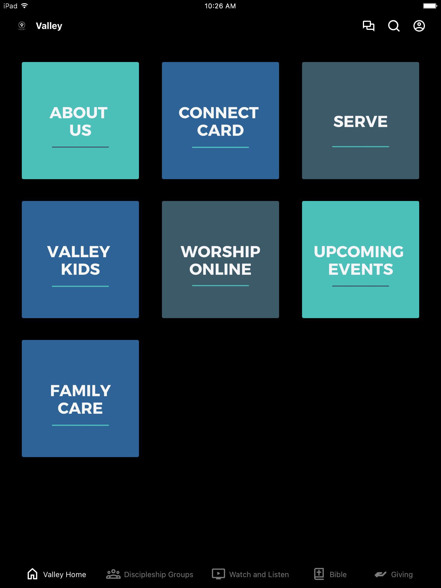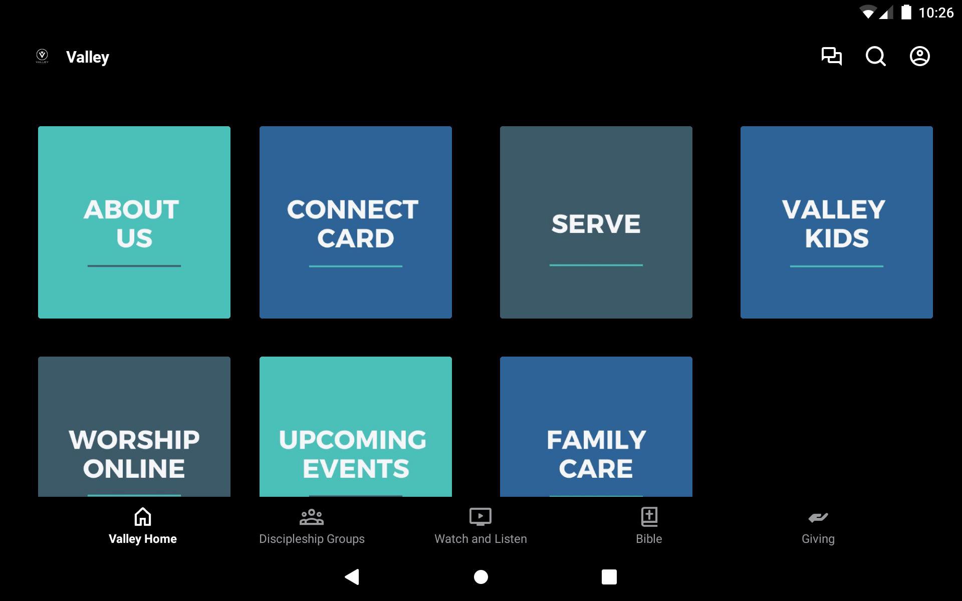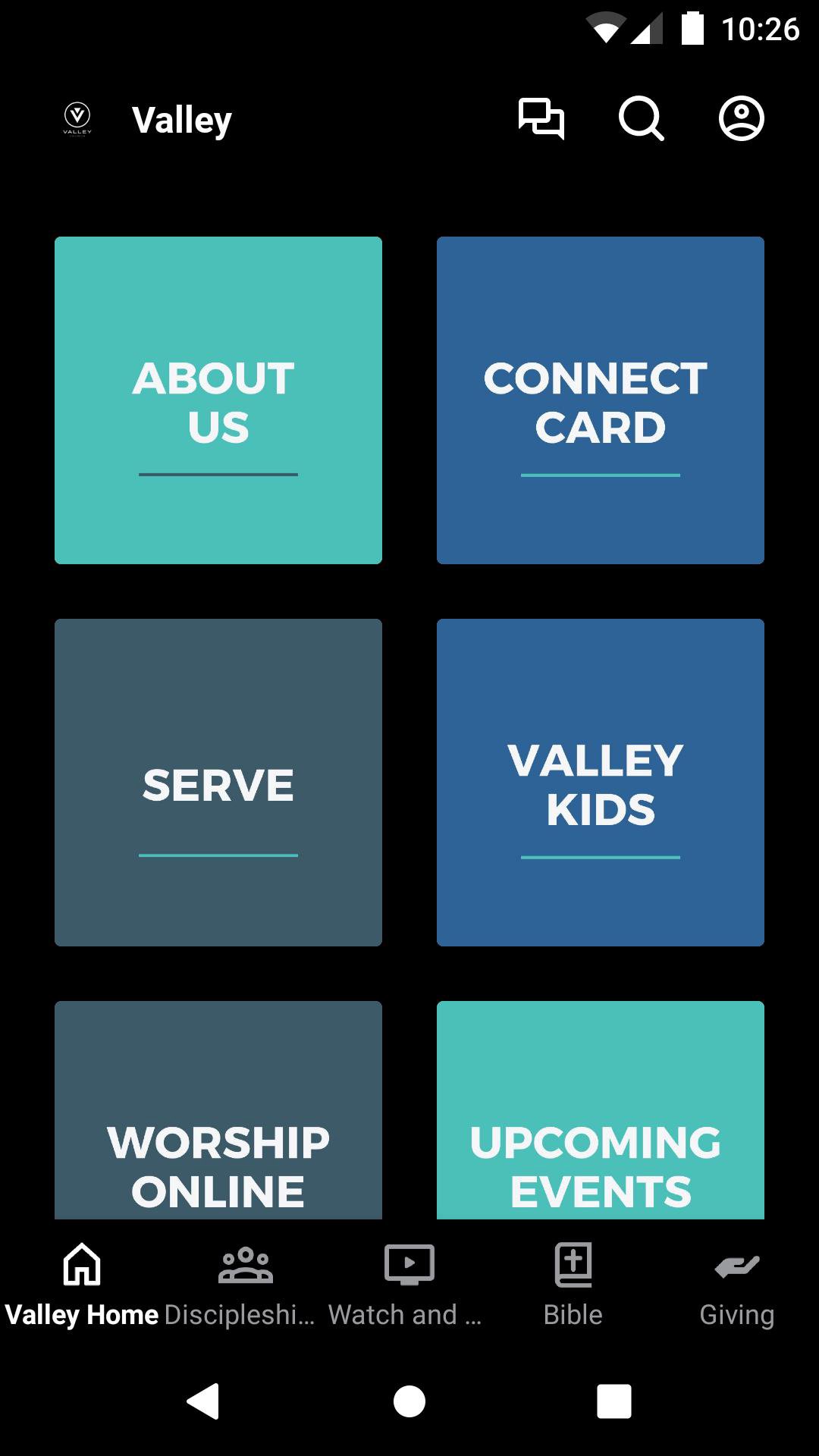 This app will help you stay connected with the day-to-day life of Valley Church. With this app you can: watch or listen to past messages; stay up to date with push notifications; share your favorite messages via Twitter, Facebook, or email; and download messages for offline listening. You can also register for upcoming events, learn more about us, read the Bible, and give tithes and offerings.