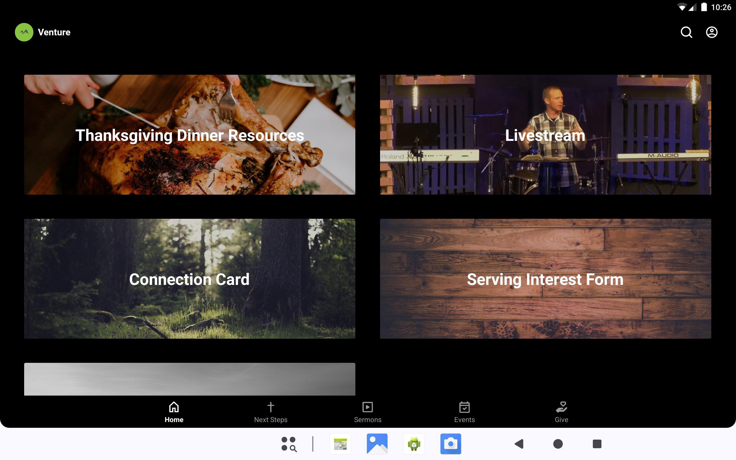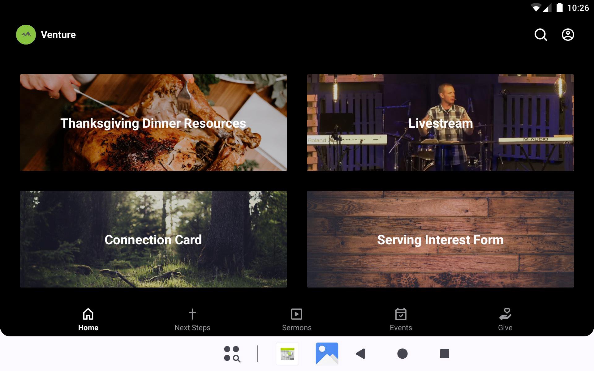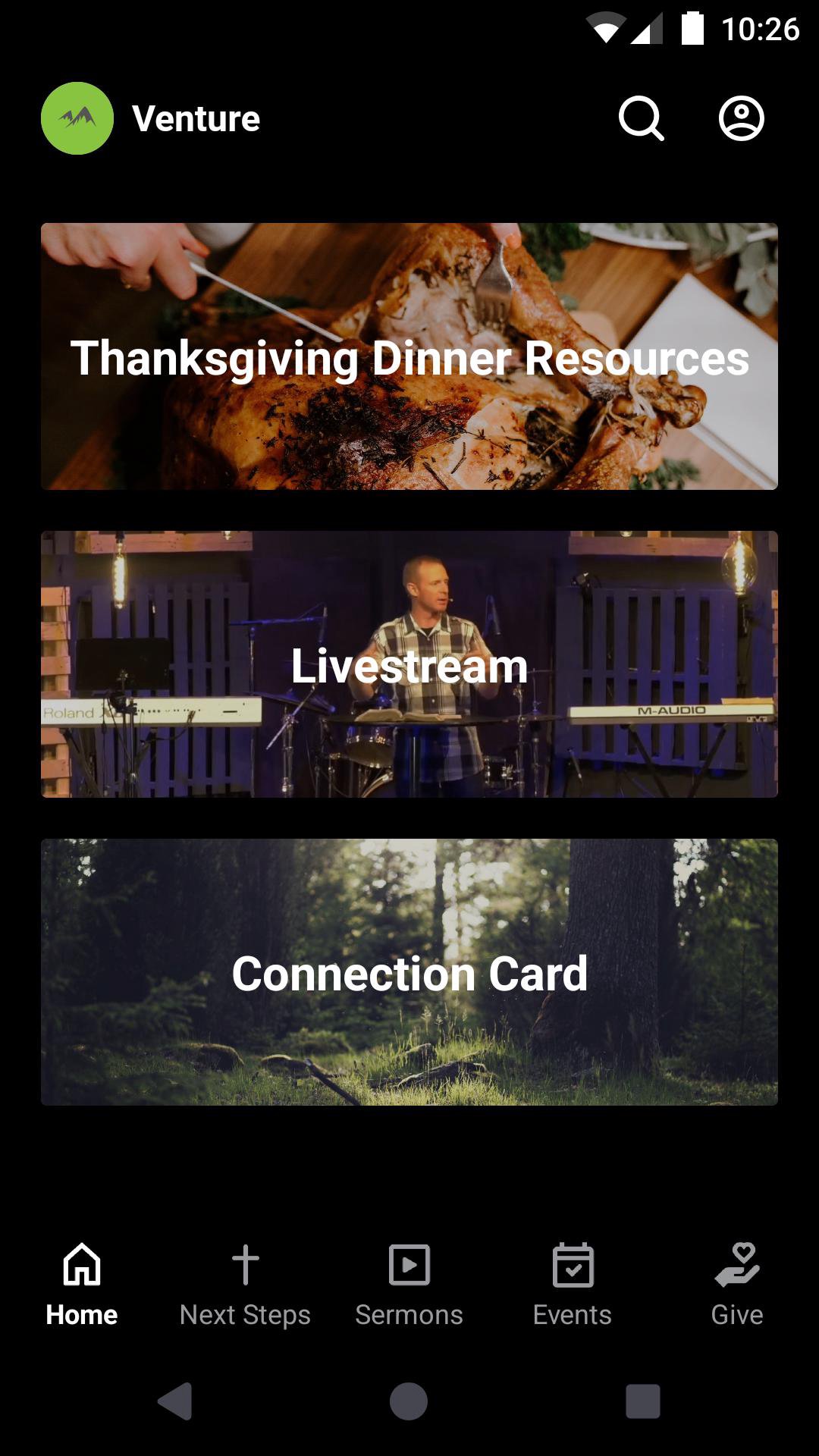 The Venture Church app features tools to help you take the “Next Step” on your spiritual journey, no matter where you are along the way. This app gives you access to sermons, small groups, directions, events, giving, information and more. Prepare yourself to see lives changed as you join us on this Venture mission of loving God, loving people, and serving others.