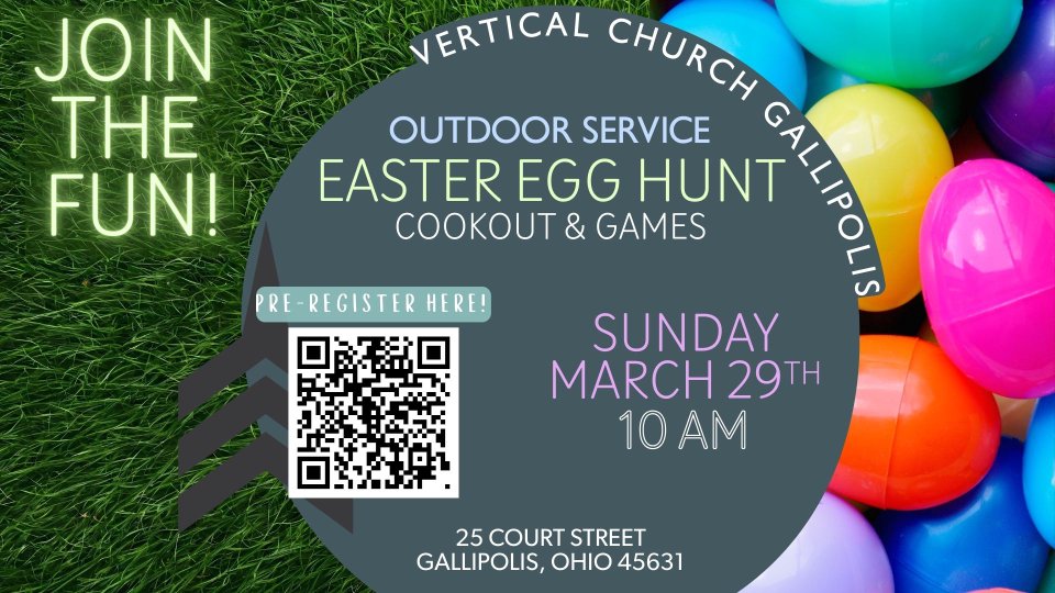 Join us for our Palm Sunday service and our annual Easter Egg Hunt for ages 5th and under. Following the hunt, there will be hot dogs and food for all. Registration closes at 10 am on March 29th.