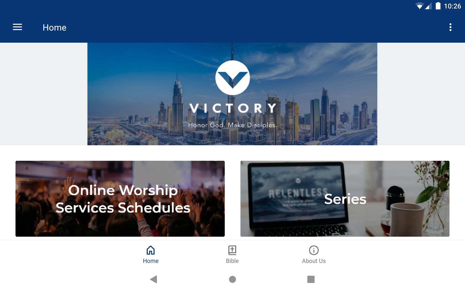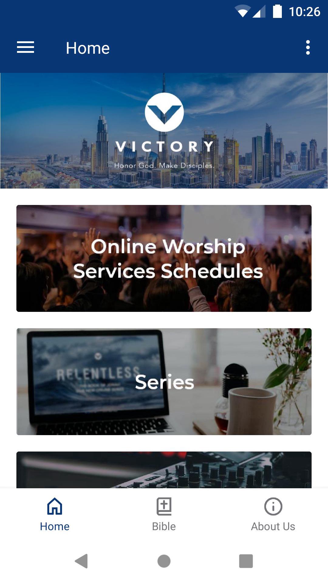 The new Victory Dubai App features resources, service and event schedules, and ways to get connected.