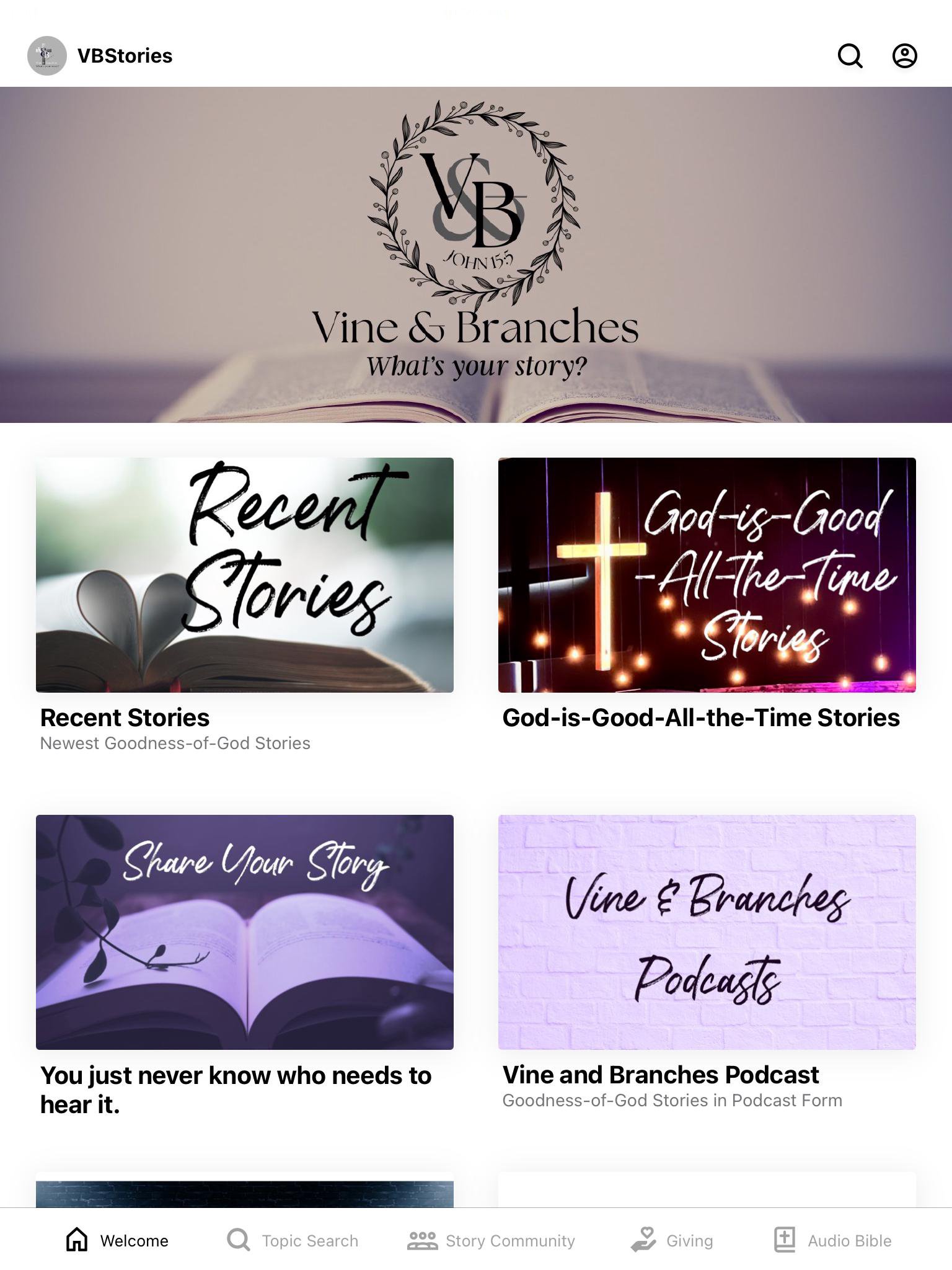 The Bible is full of stories that point to the loving hope of Jesus. Still today, people everywhere are experiencing that same loving hope. Vine and Branches Stories App wants to help people share those stories, and through those stories show that He is, He was, and He always will be Good!