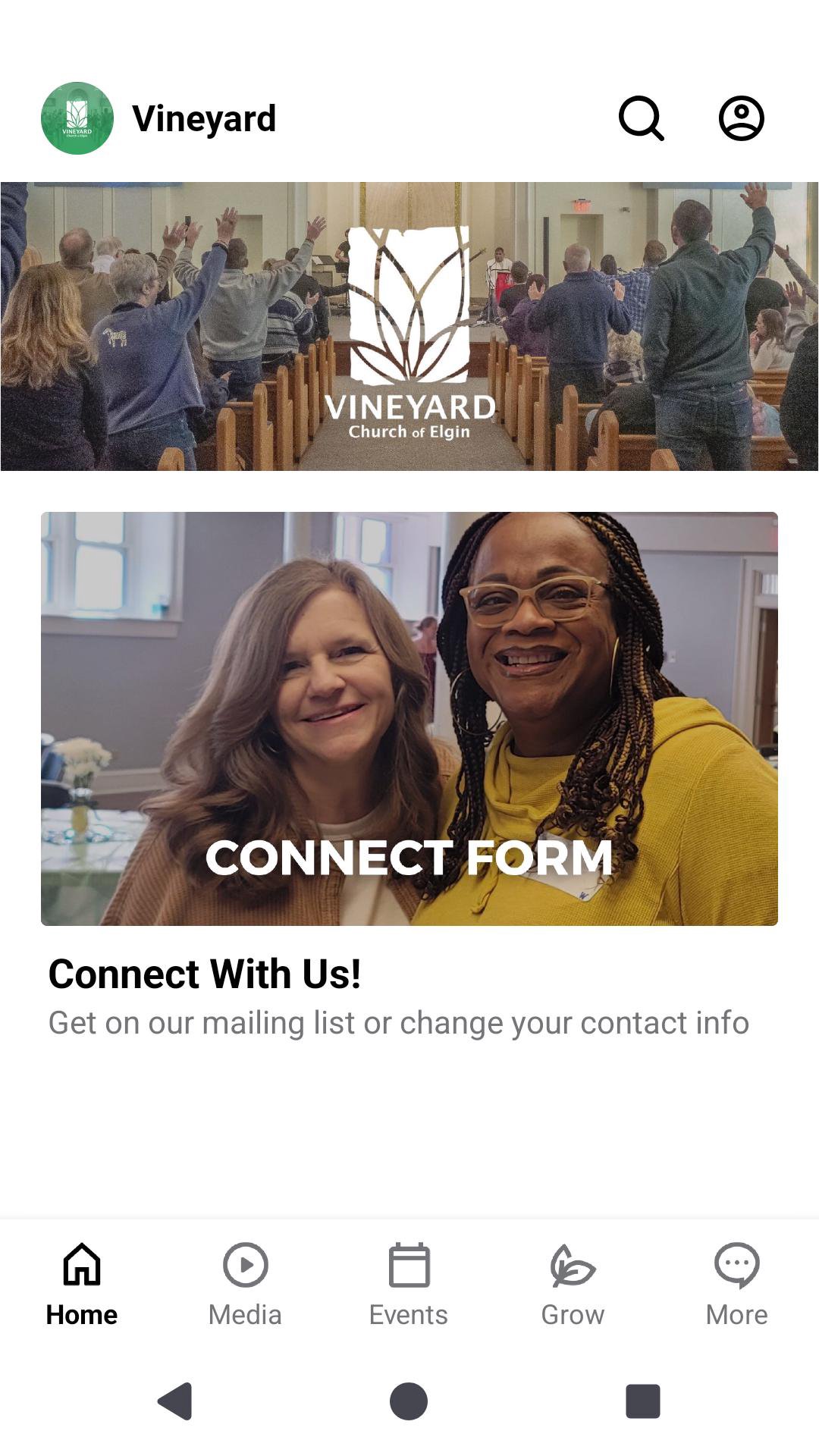 The Elgin Vineyard church app connects you with our weekly messages, music, events, giving and more.