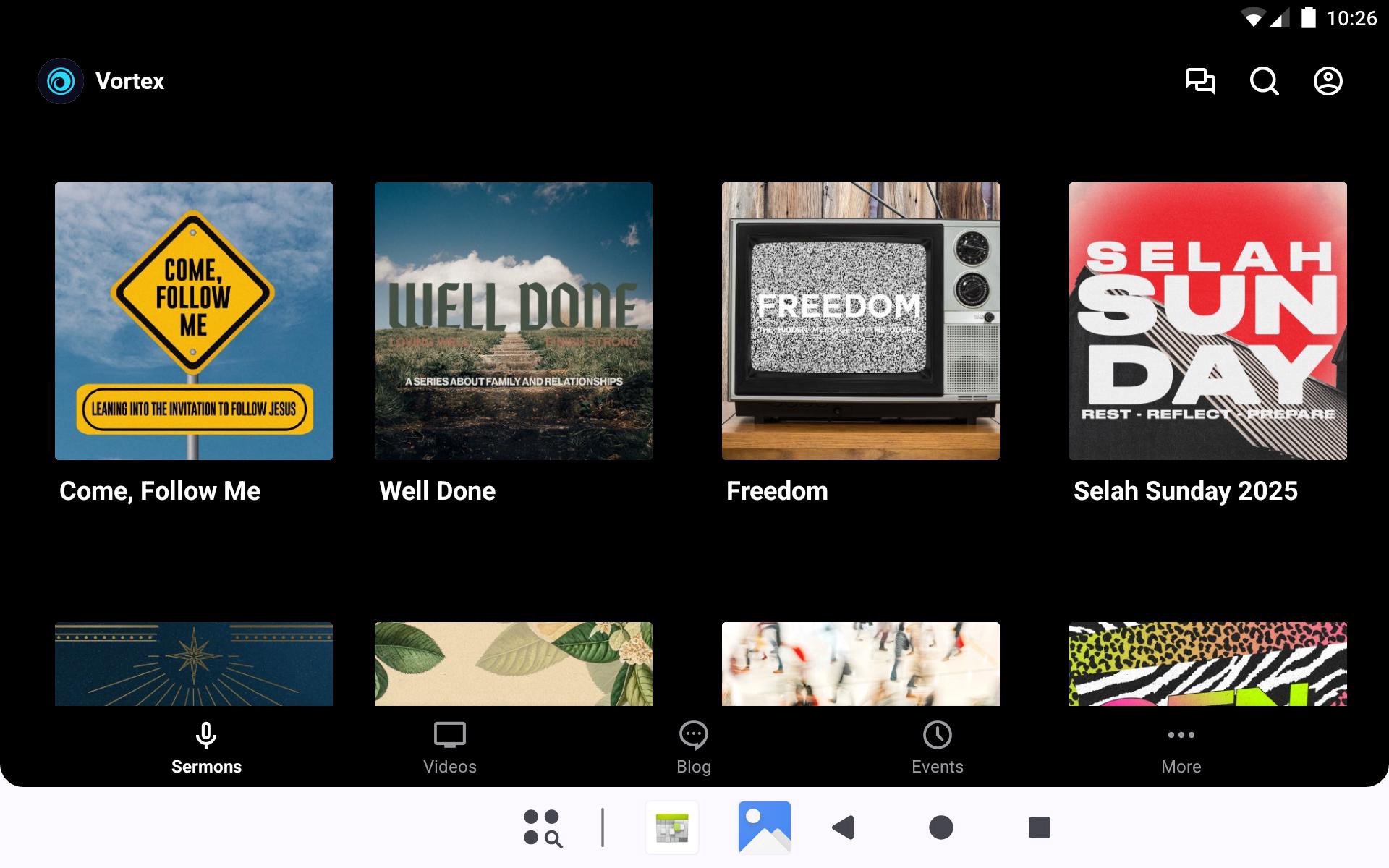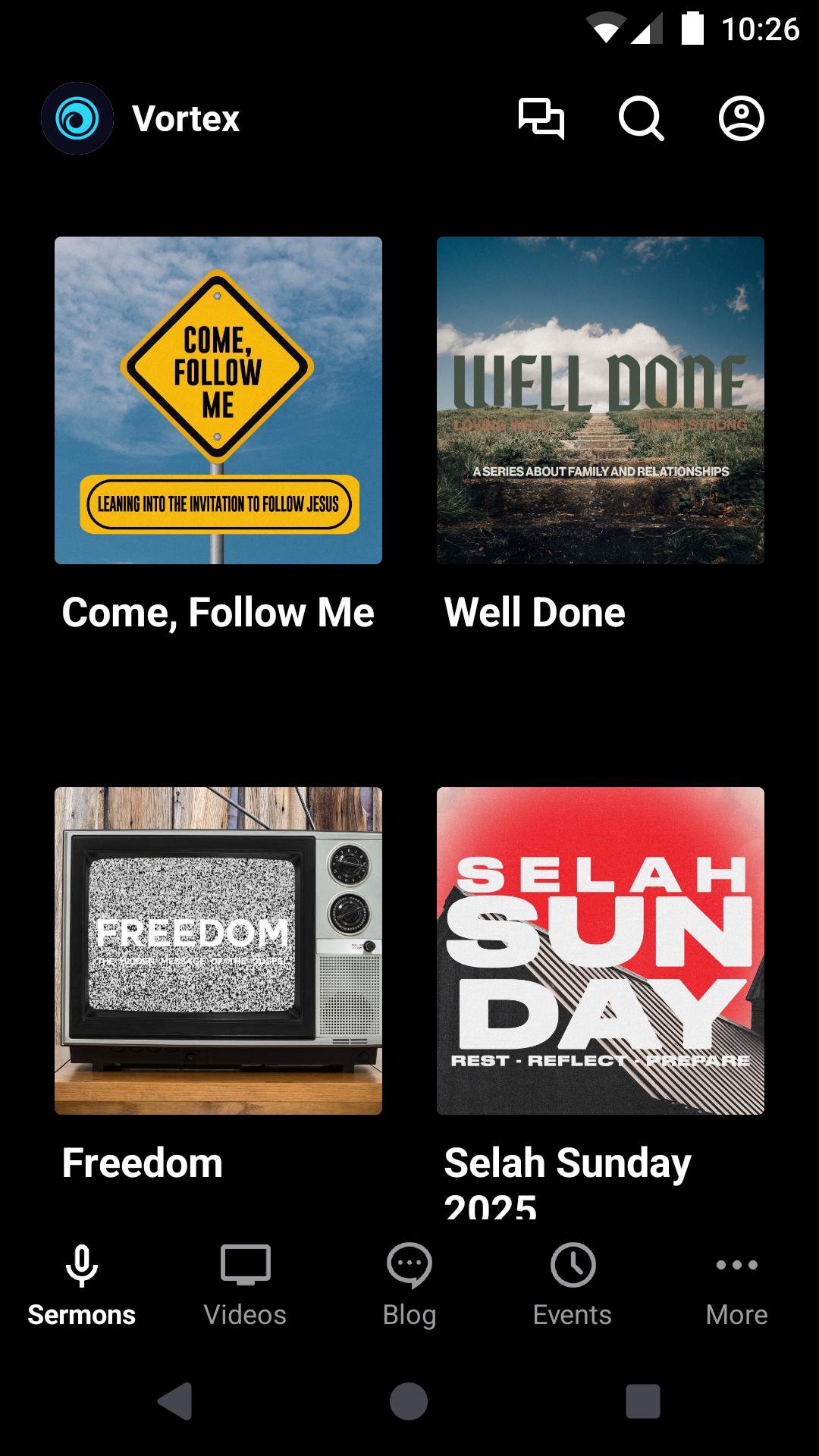 Welcome to the official Vortex Church app. Using the Vortex app you'll always be only a tap away from the Vortex Church sermons, music, and blog. You can browse our entire collection of sermons and video clips to easily listen or watch whatever you'd like, then share it with friends on Facebook, Twitter, or by email. Using this app you can - Listen sermons from the entire media library. - Read Pastor Kevin’s blog updates. - Watch video clips from past sermons. - Stay up to date with the latest news from Vortex. Vortex Church exists to invite people to make Jesus the center of their lives and invest in their journey to get closer to Him. For more information, or to leave us feedback, visit us online at http://vortexchurch.com The Vortex Church App was created with the Subsplash App Platform.