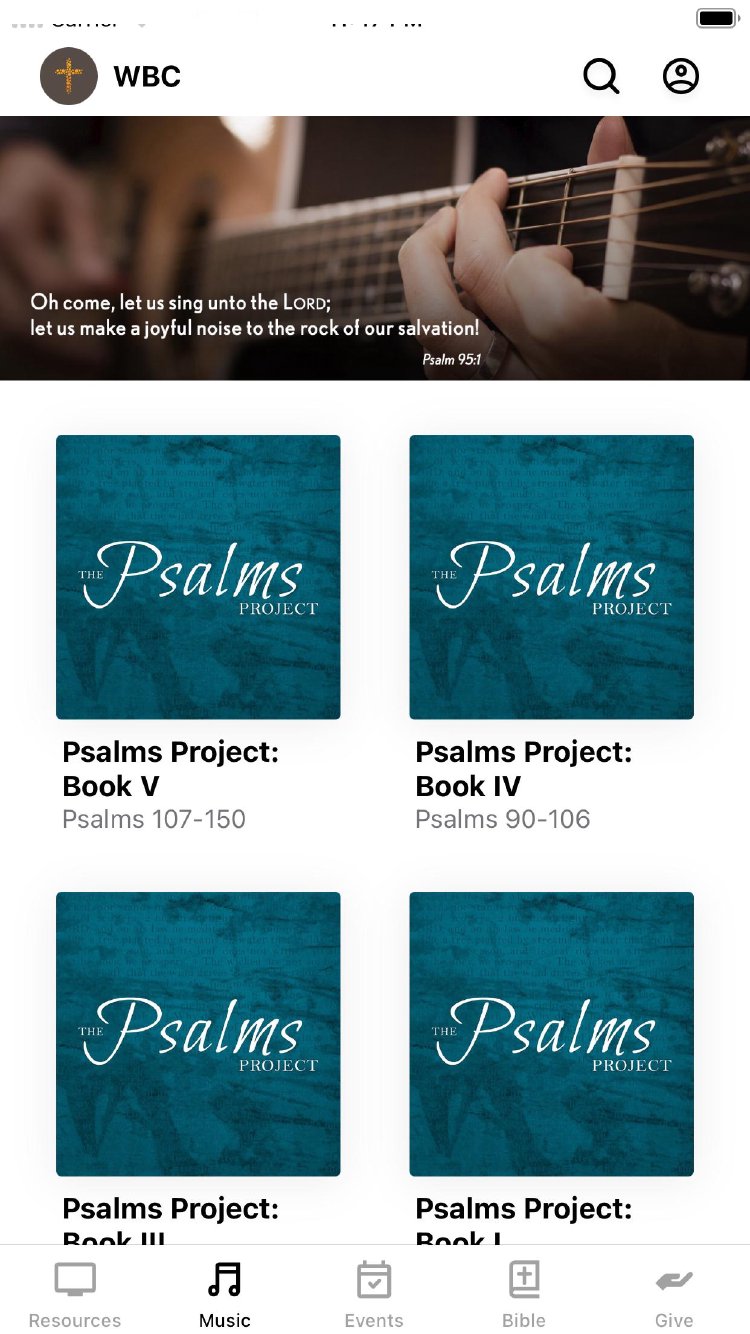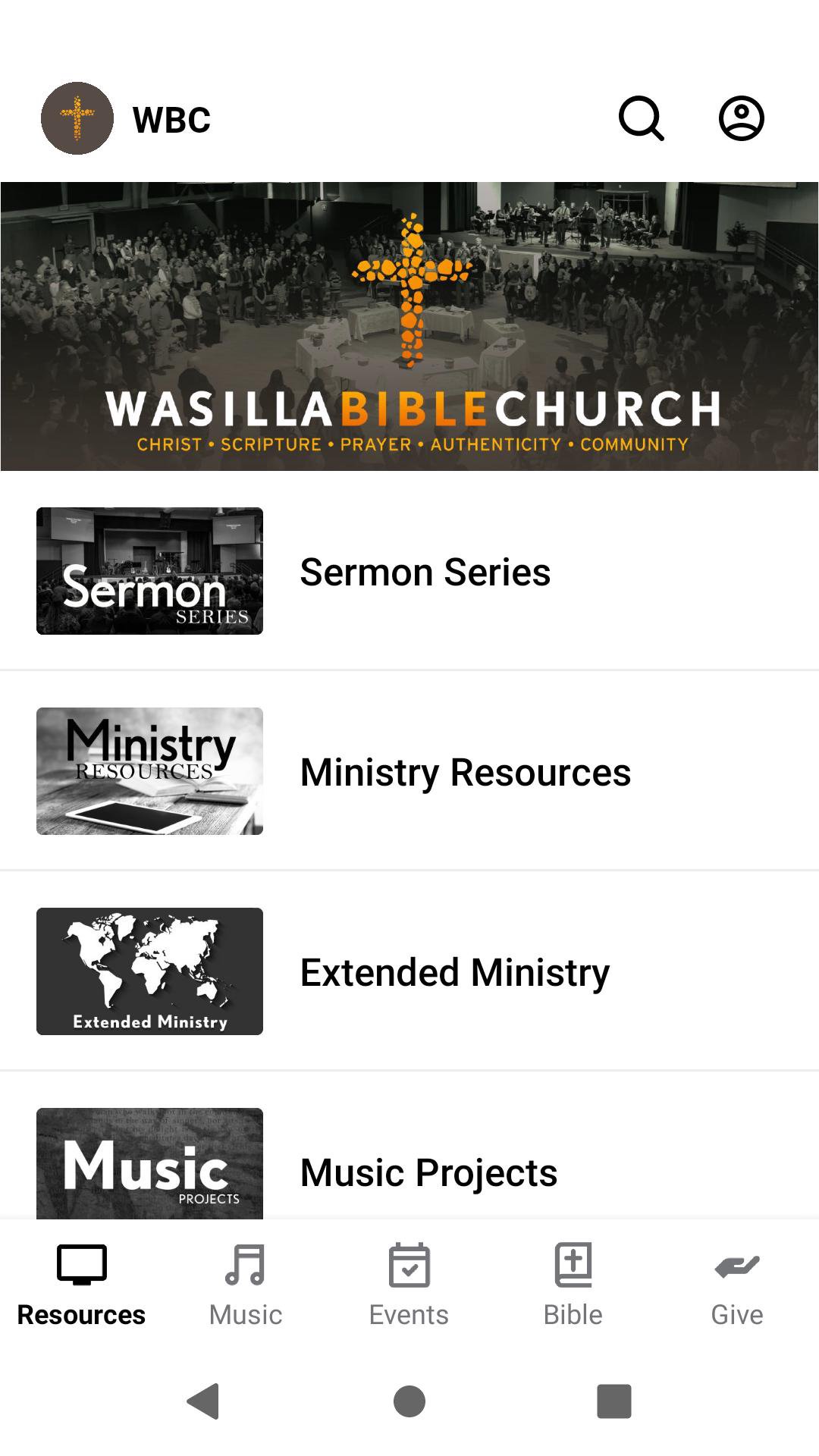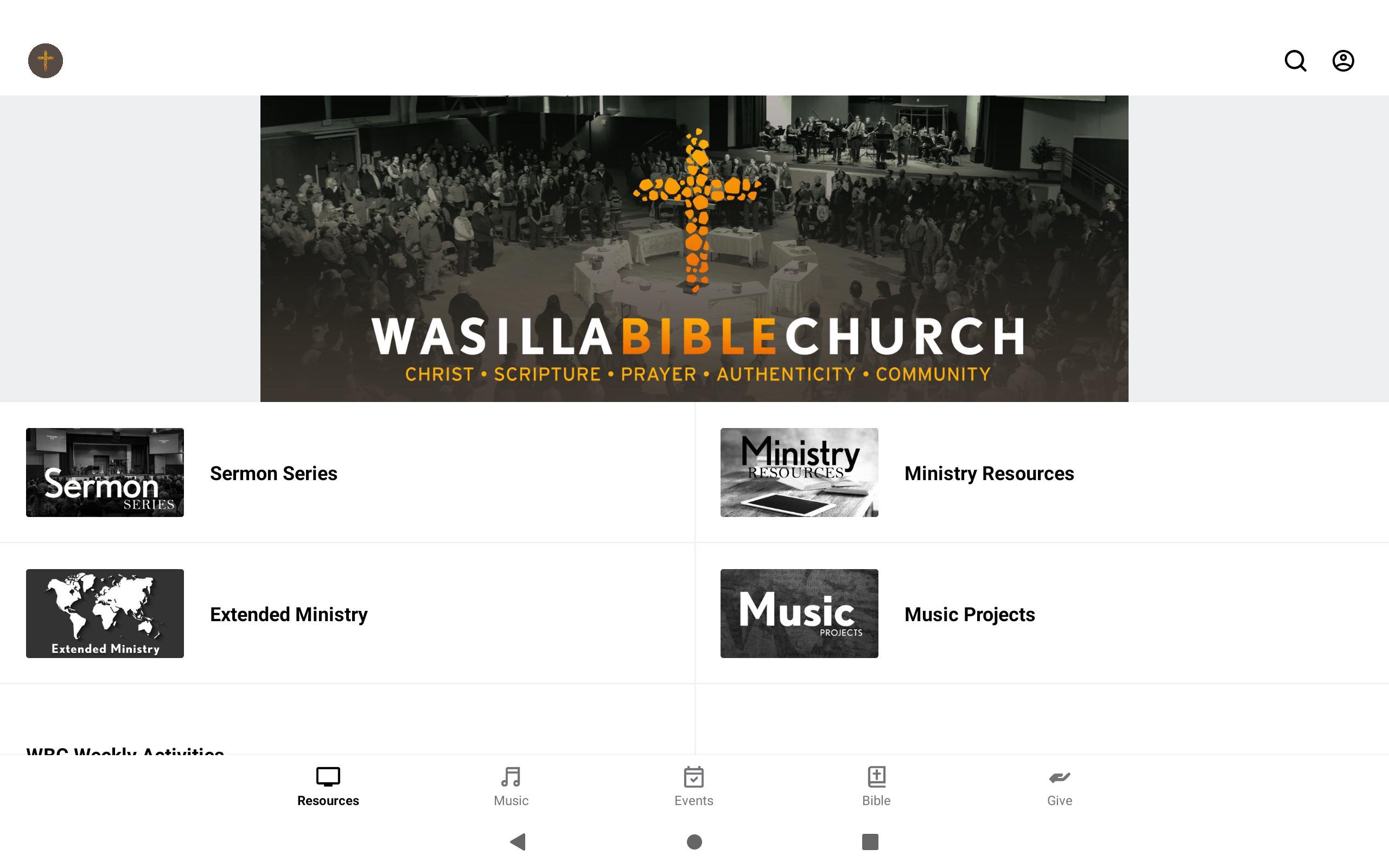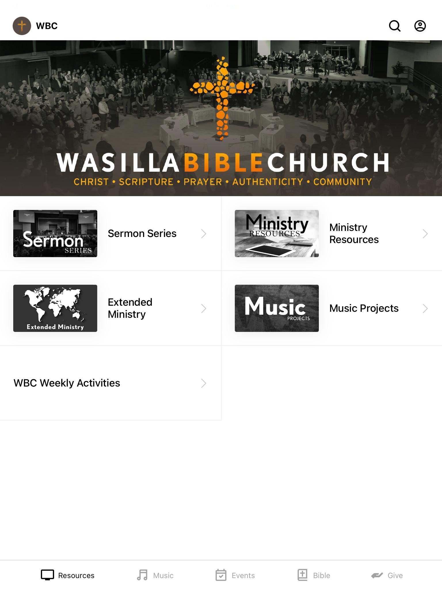 Welcome to the Wasilla Bible Church App! Through this app you can: - Engage in our online services - Watch, listen to, and share recent and past sermons - Learn about our Extended Ministry partners - Listen to our Psalms Project and other music from our Worship Ministry - Access other helpful ministry resources
