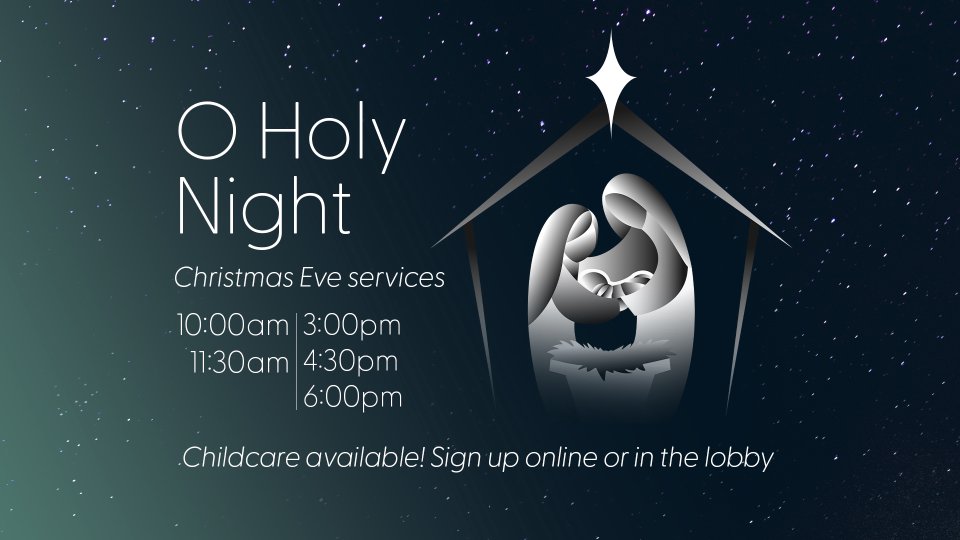 This year Christmas Eve falls on a Sunday, and we are spreading out the joy throughout the day! Identical Christmas eve services will be at 10am, 1130am, 3pm, 430pm and 6pm. These candlelight services are family friendly with favorite carols, a special kid’s element, and an encouraging message about Jesus Emmanuel, God with us. Childcare through pre-k is available through registration.
