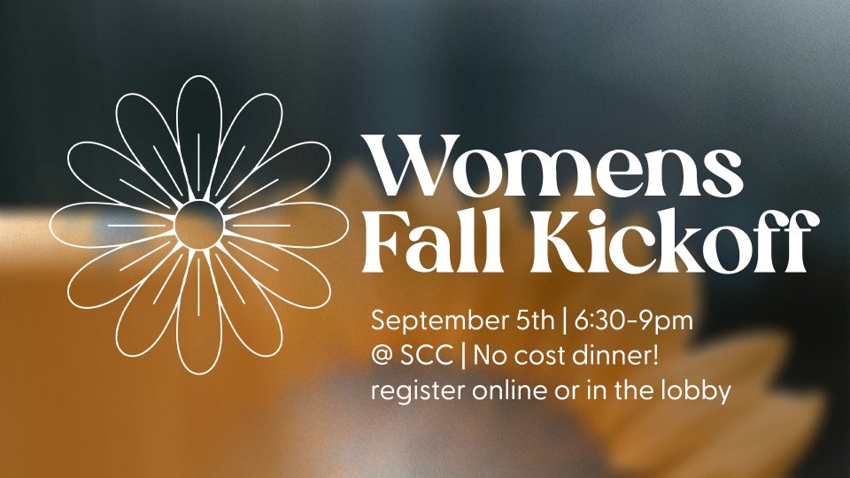 Ladies, join us for our annual Women’s Fall Kickoff on Thurs, September 5th, 6:30-9pm! Our Fall Kickoff is your best opportunity to get connected with other women at SCC, to check out Fall Bible study offerings and other women’s ministry programs! Soup & salad dinner provided. Please register for this free event.
