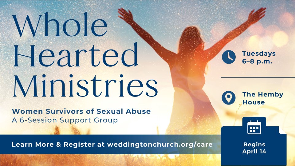 Whole Hearted Ministries is devoted to shining the Light of Christ into the shadows of sexual assault, a challenge affecting nearly 1 in 5 women in our nation. These statistics represent individuals, likely someone around us, who have endured trauma and often suffer in silence due to shame. Weddington Church is committed to breaking that silence, offering compassion, support, and Christ’s love to heal and restore those affected by this profound issue.