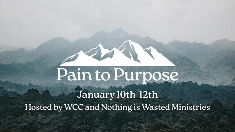 Join us for our Pain to Purpose Weekend, hosted by WCC and Nothing is Wasted Ministries. We will have 4 different sessions. Check it out below.