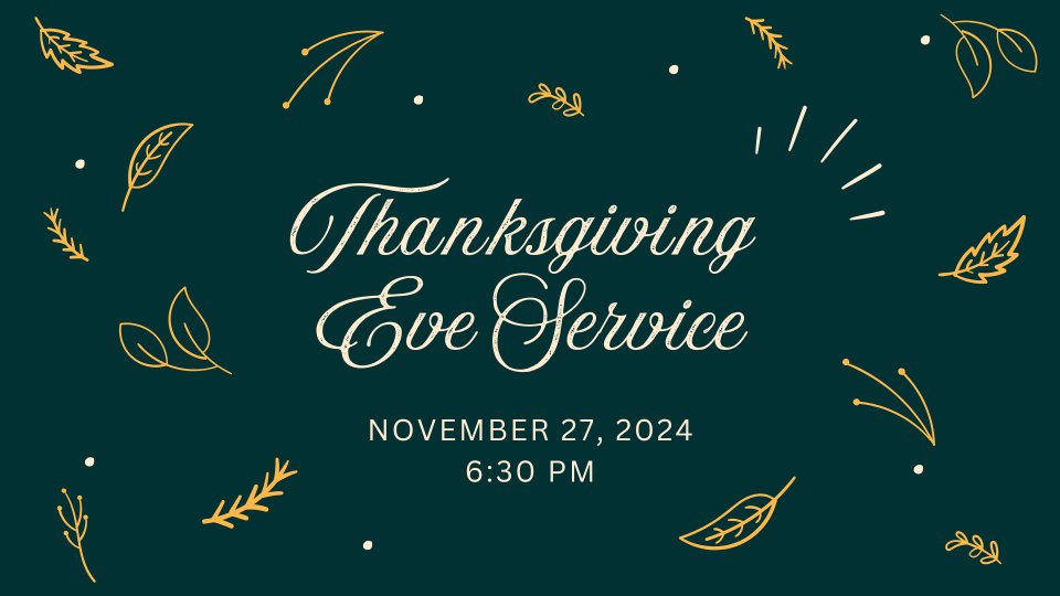 All are welcome for this service dedicated to expressions of gratitude for the good work of God in our lives. Worship, a devotion, and sharing for all ages will take place in the Sanctuary from 6:30 - 7:30 pm. The nursery will be open during the service for those 2 and younger.