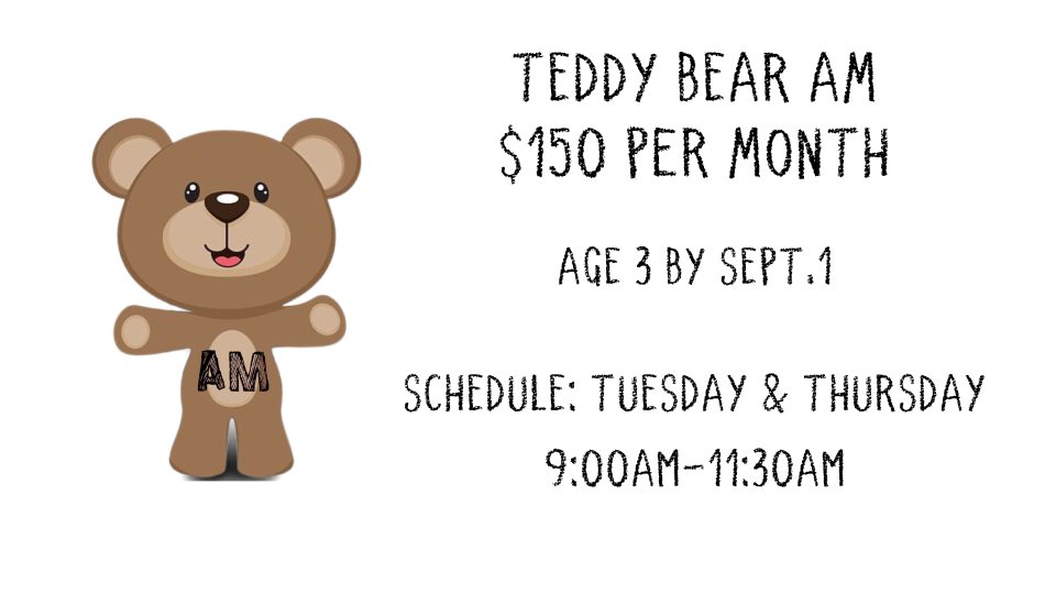 Must be potty trained, current on immunizations and age 3 by Sept.1
