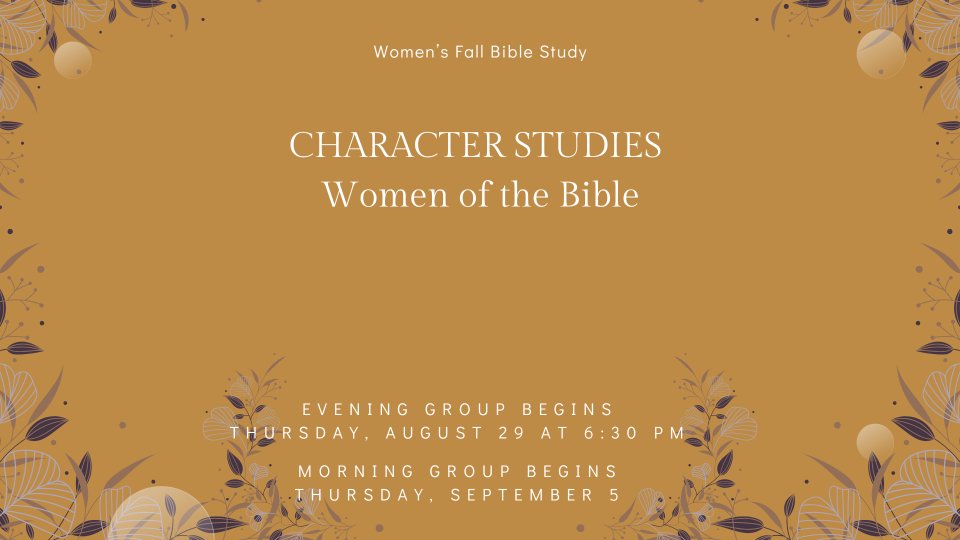 We will be studying the Women of the Bible this fall in an Inductive Bible Study style!