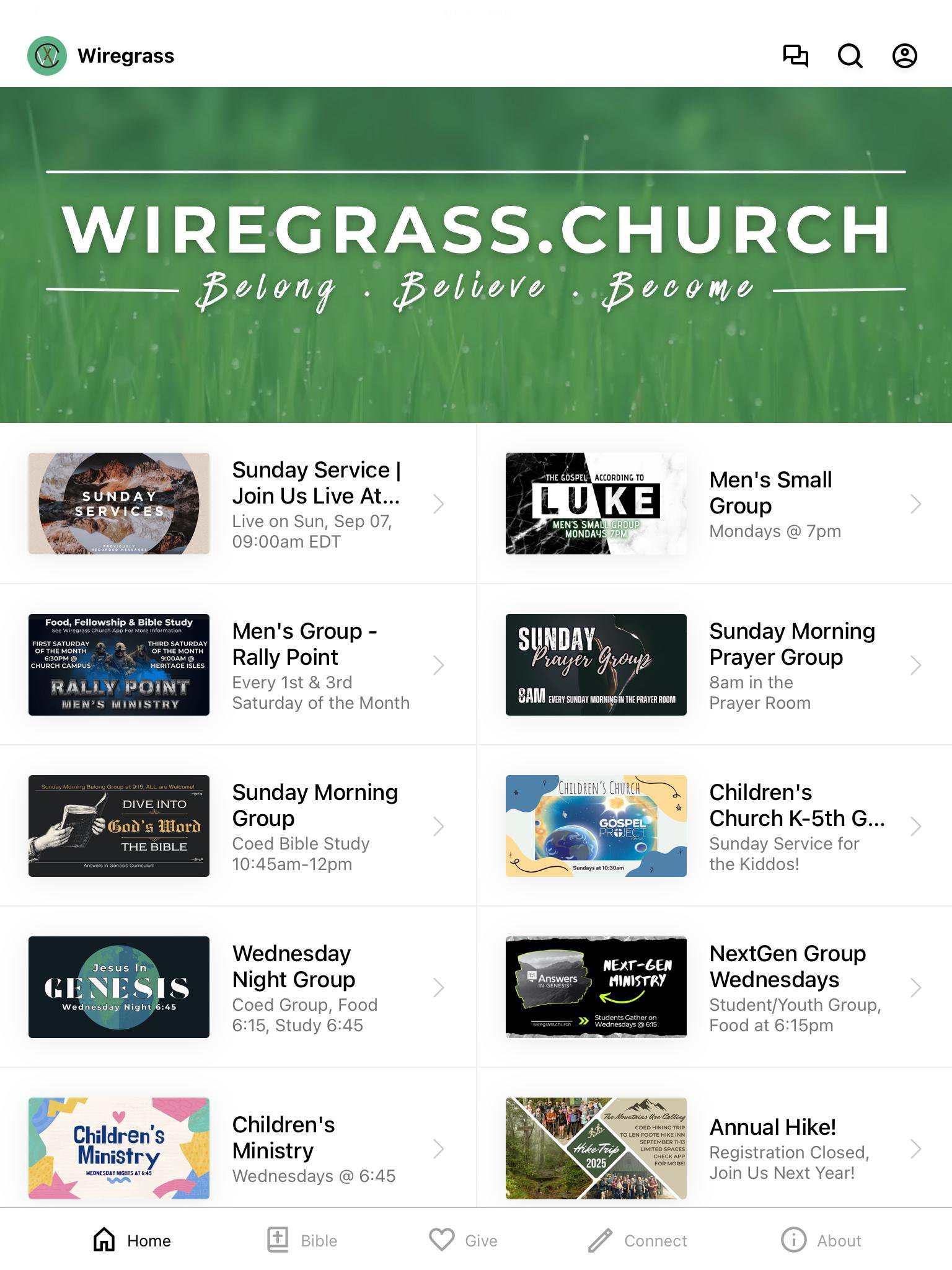 The vision of Wiregrass Church is to multiply a community of authentic, Holy Spirit led believers who make disciples. We want to see where God is at work around us and join Him in His work, locally and globally. We want you to Believe on Jesus and His mission through us as the church. We want you to Belong to Jesus and His church. We want you to Become everything God wants.. Take Jesus to our neighbors and the nations.