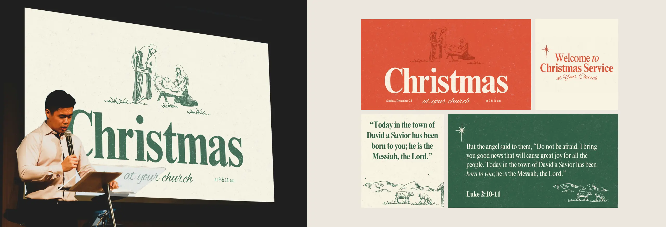 Christmas sermon art: This includes title slides, content slides, lower-thirds, and key Christmas verse slides. We've even provided pre-sized versions for seamless use within the Subsplash Dashboard.