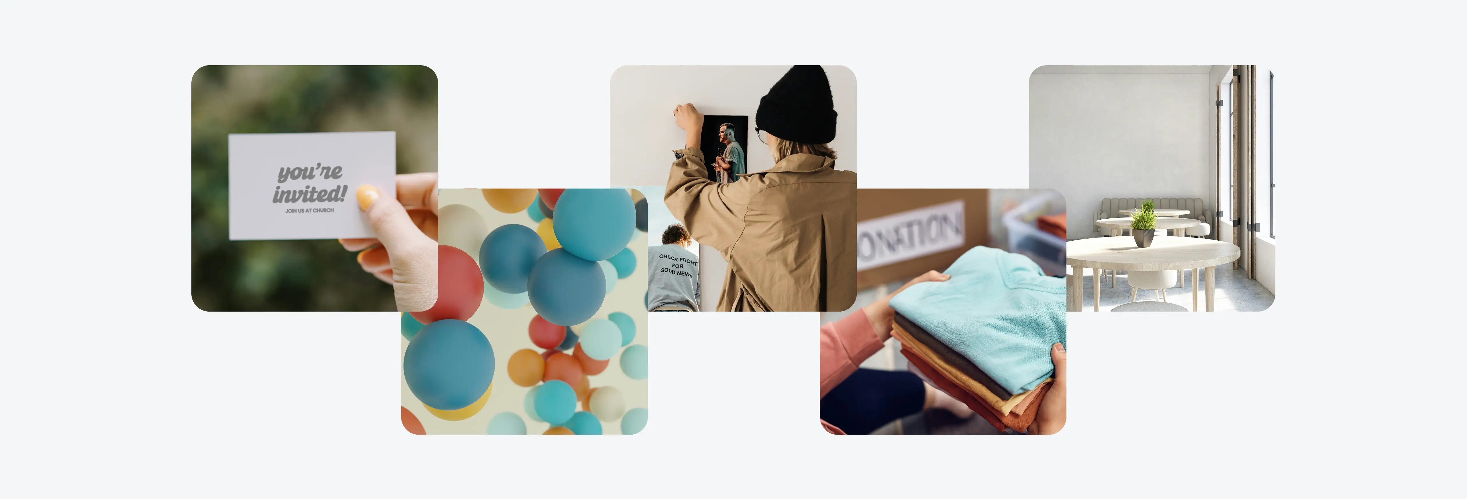 The first step to any church anniversary celebration is good communication! That starts with getting the word out about your church. While digital invites are important (see more below), a church anniversary flyer or postcard is a great place to start. Posting flyers and sending out postcards are simple yet effective means to get the word out about your big celebration. Be sure to include images, pertinent information, and QR codes on your invites so guests can easily access sign-up pages or links for more info.