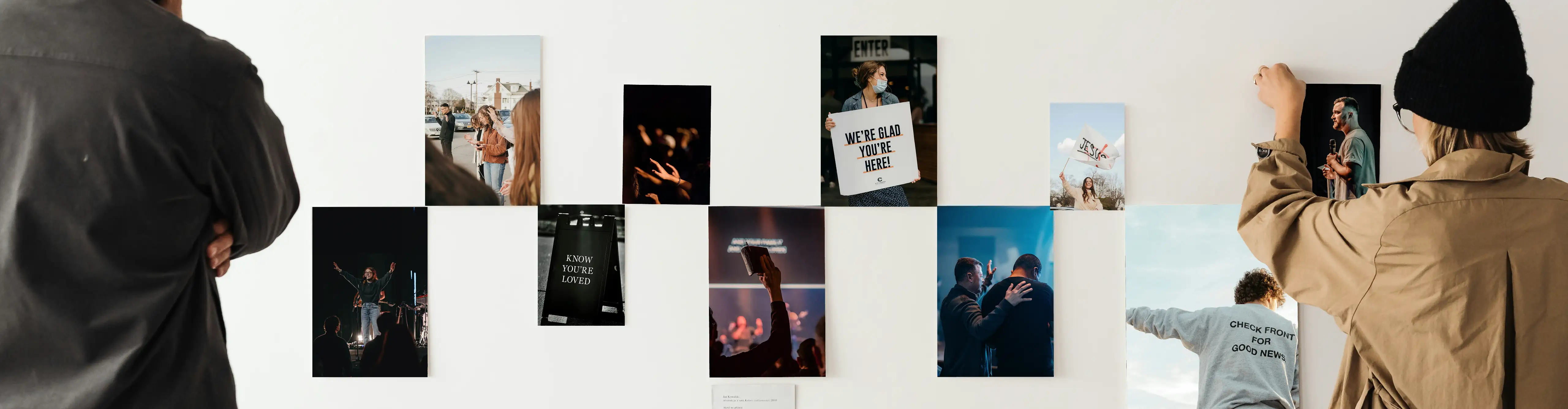 A church anniversary wall not only honors your history but also inspires visitors and members alike, showing them the tangible ways God has worked through your congregation over the years. Church members will have fun spotting their own photos on the wall. You can even include Sunday school crafts from children. It’s a powerful way to make your church’s mission and legacy visible in real time.