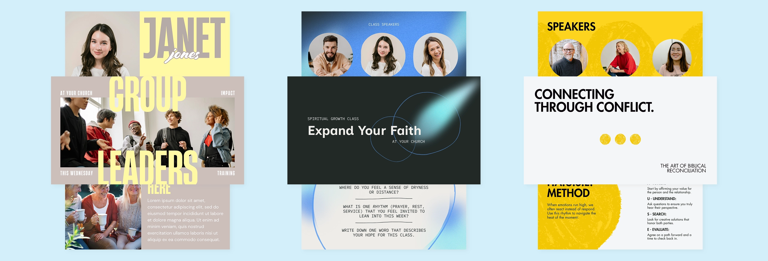 Elevate your ministry’s impact with our brand-new Leadership Events Kit! Featuring professionally designed graphics for everything from spiritual growth classes and team-building events to group leader training and registration slides, this kit offers a complete suite of professionally designed, customizable templates.