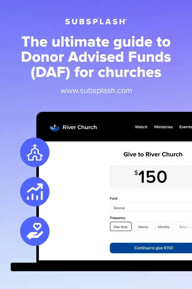 Editor’s tip: Subsplash’s platform makes it easy for your staff to track all forms of generosity in one place so you can identify trends, track donations from all sources including DAFs, and follow up with gratitude when DAF grants come in.