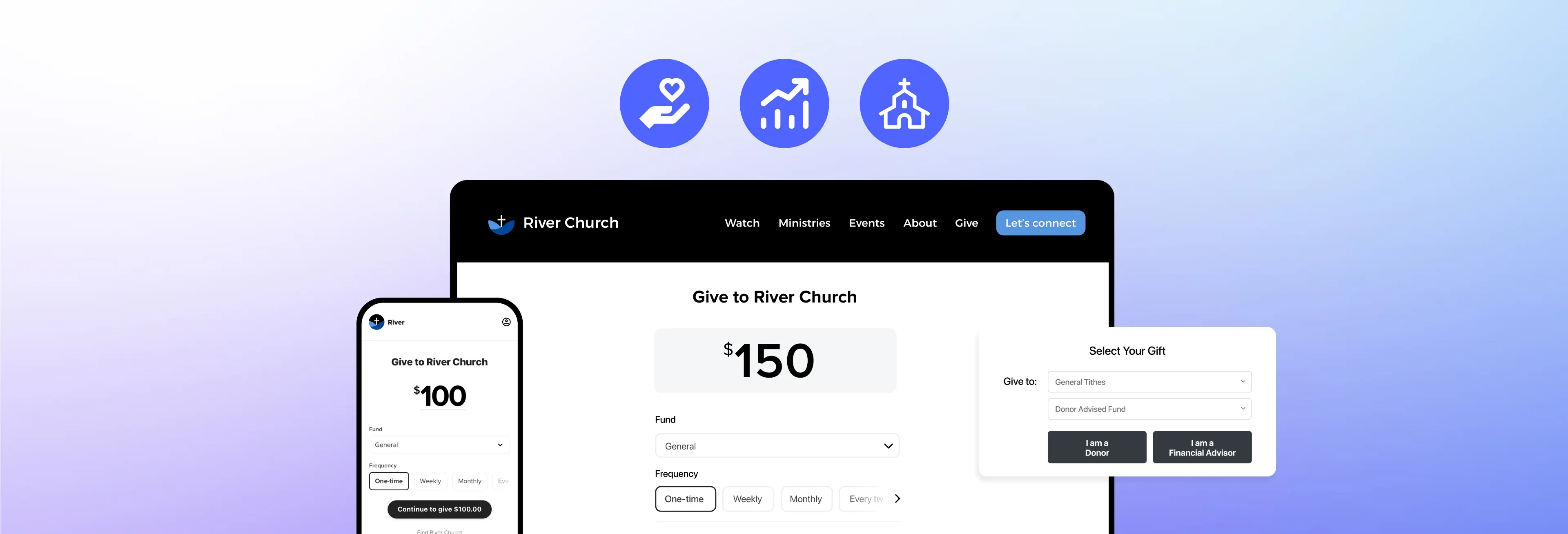 With powerful digital tools including websites, apps, live streaming, giving, church management, and messaging all in one unified dashboard, your church can confidently manage every stream of generosity in one place.