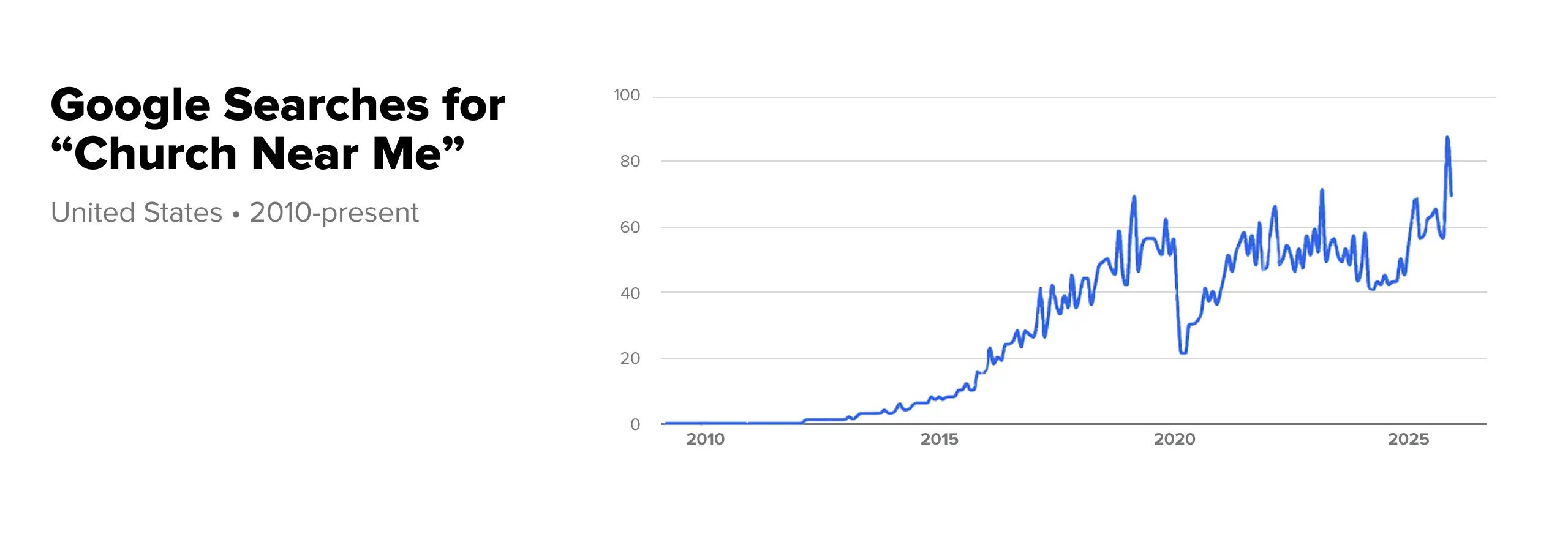Did you know that according to Google Trends, searches for “church near me” are at all-time highs? More people than ever are looking for a church to visit, attend, and to call home.