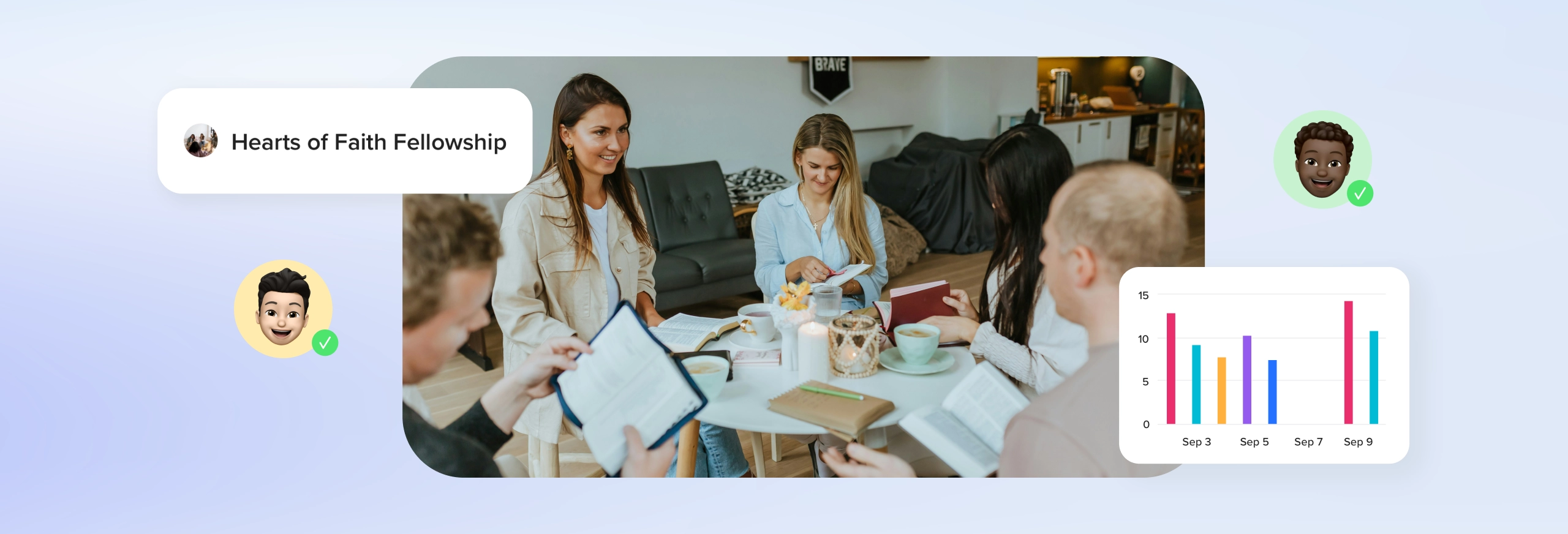 Now, leaders can guide their groups toward growth with attendance tracking, detailed analytics, and group announcements—right from their phones. They can even add notes on the fly, or share events, take polls, and view group calendars.
