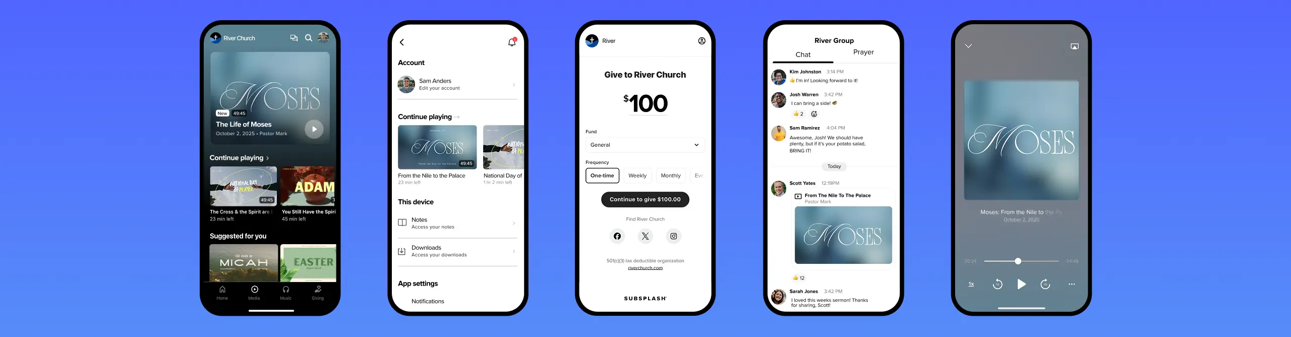 Churches that use Subsplash see 3 times the number of app users as people in attendance on Sunday mornings! People love being able to read their Bibles, watch sermon videos, ask questions and have meaningful conversations, give generously, see upcoming events, find small groups, and so much more—all in one distraction-free place on their phones.